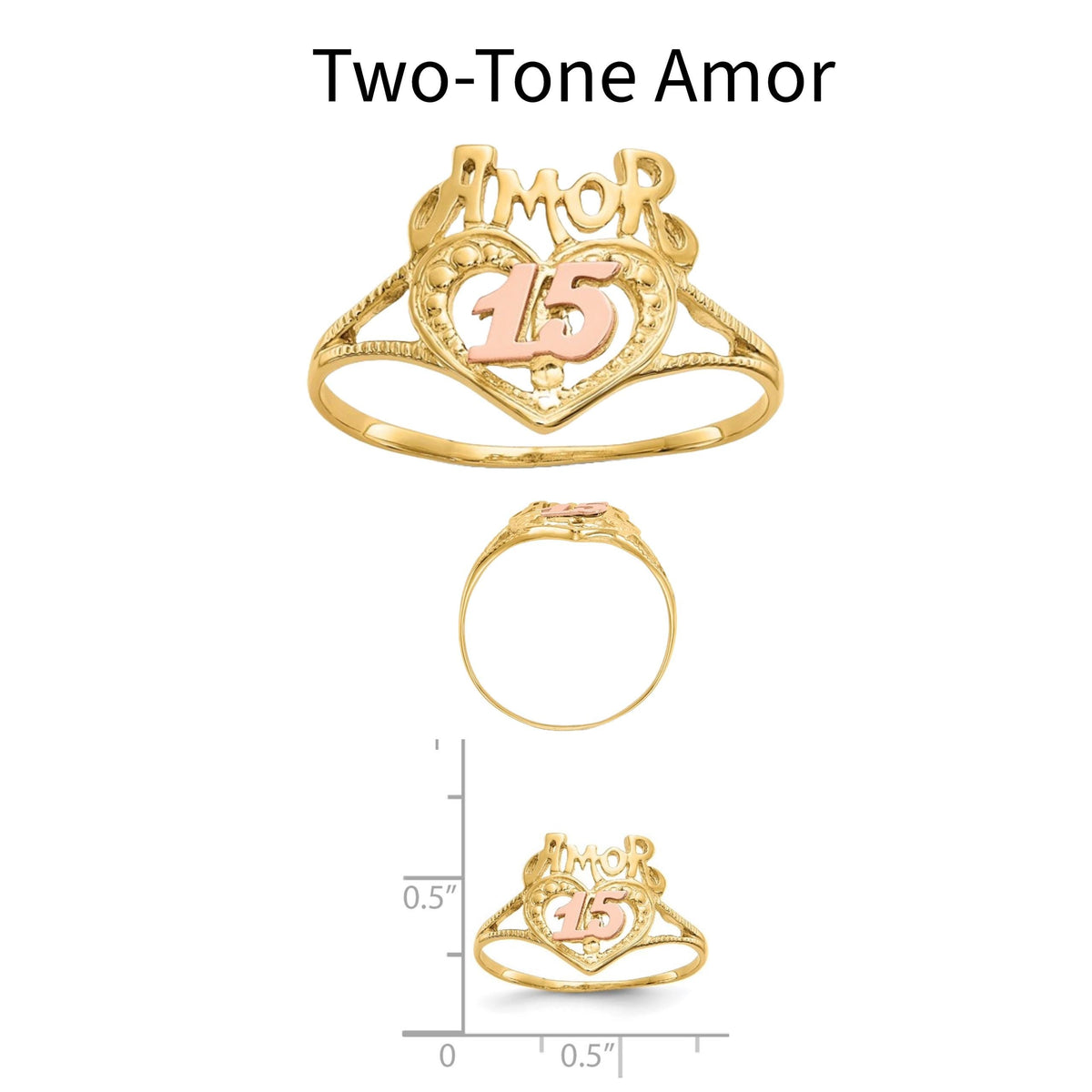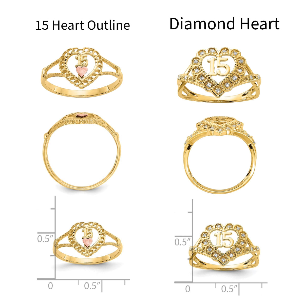 14K Gold Quinceañera Ring - 15 Años Heart & Amor Designs