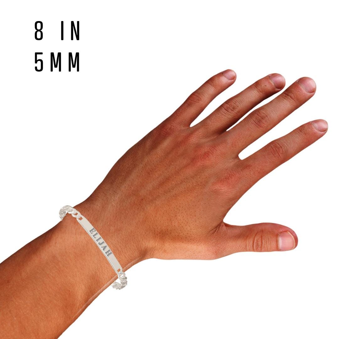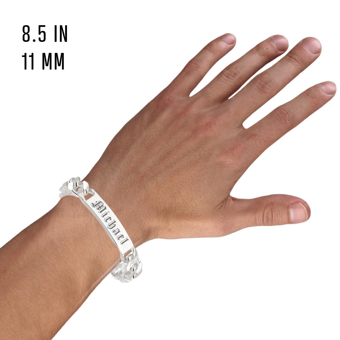 Men's Sterling Silver Curb Link ID Bracelet | Personalized Engraving | Italian-Made Solid Silver | Custom Name Plate Bracelet