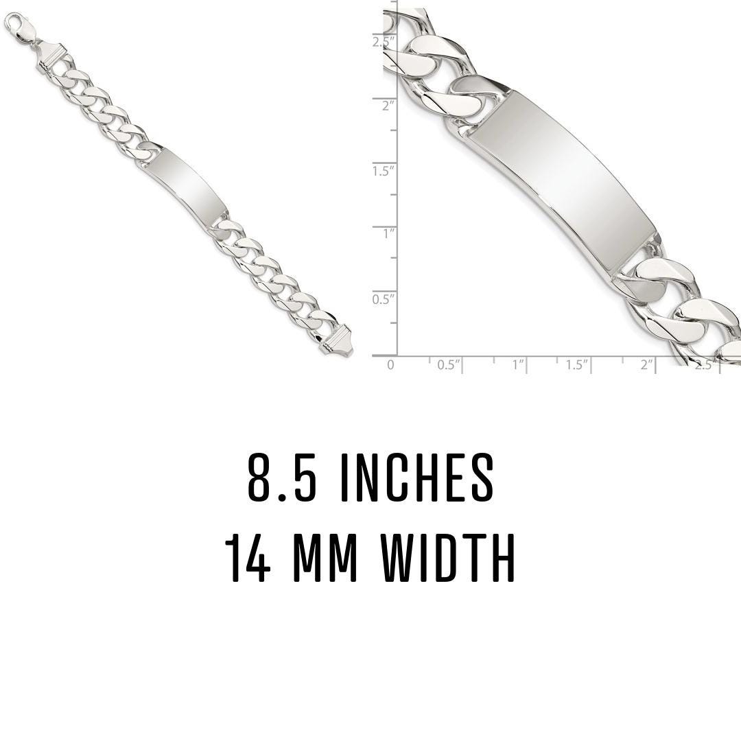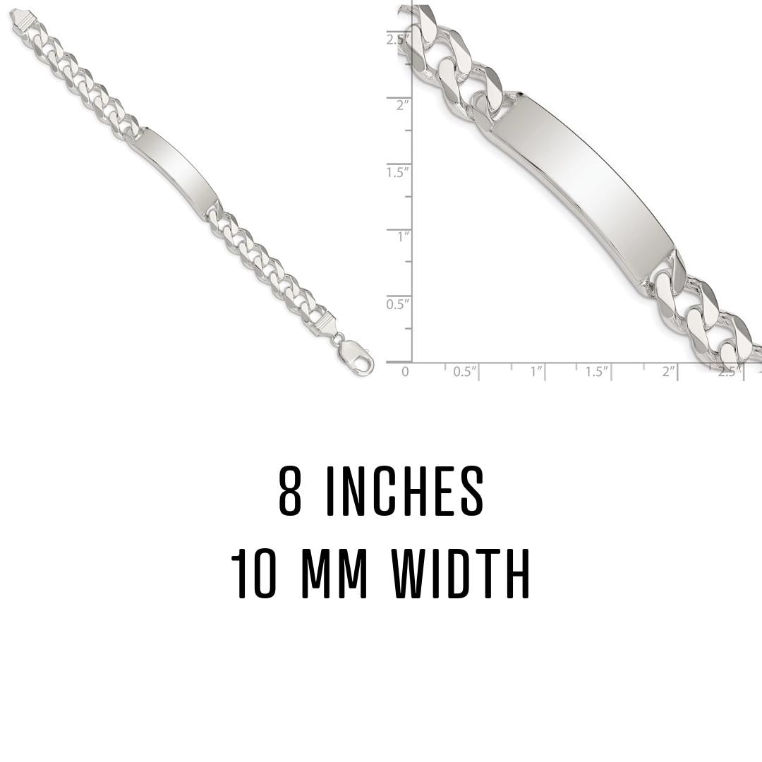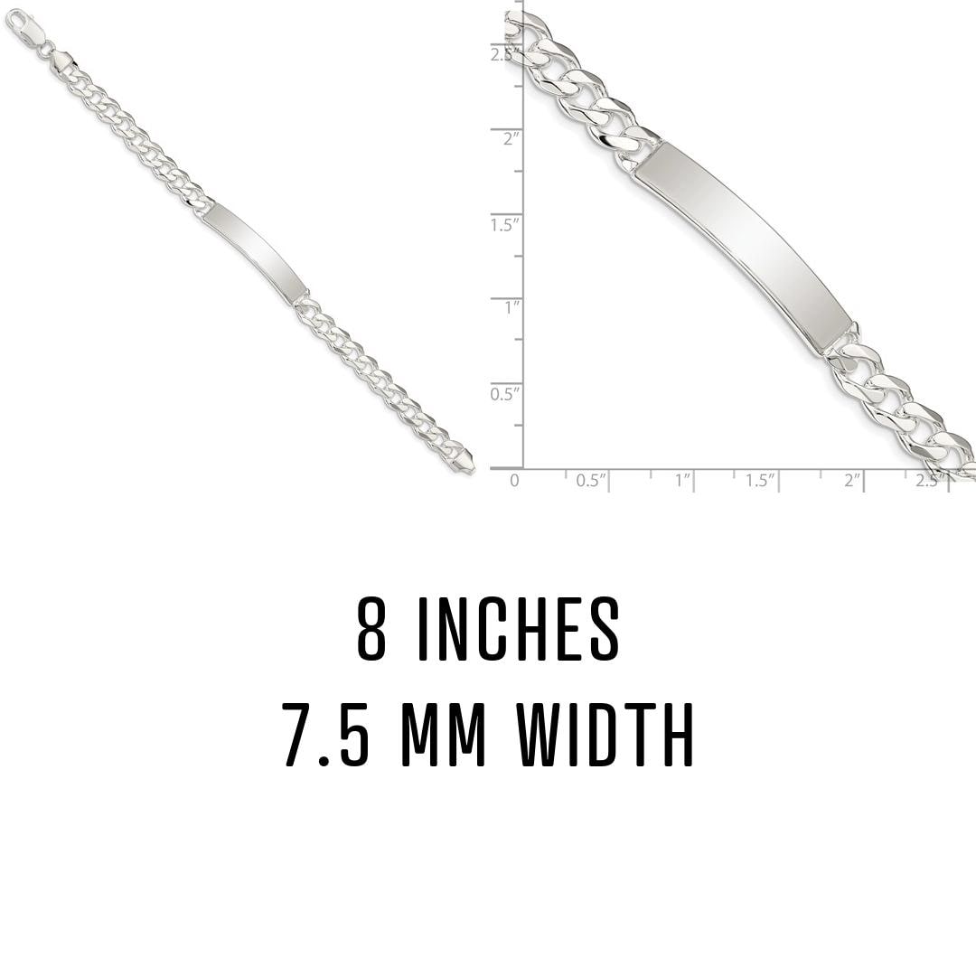 This Men’s Sterling Silver Curb Link ID Bracelet is a bold statement of craftsmanship and personal style. Made in Italy with solid .925 sterling silver, this bracelet features a polished ID plate perfect for custom engraving, whether it’s initials, a name, a special date, or a meaningful phrase. The timeless curb link design and high-quality finish make it an everyday essential or a thoughtful, personalized gift.