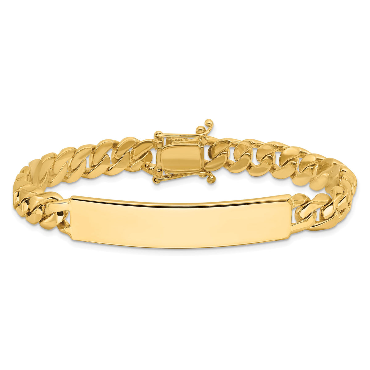 - Solid 14K yellow gold curb link ID bracelet with premium hand-polished finish