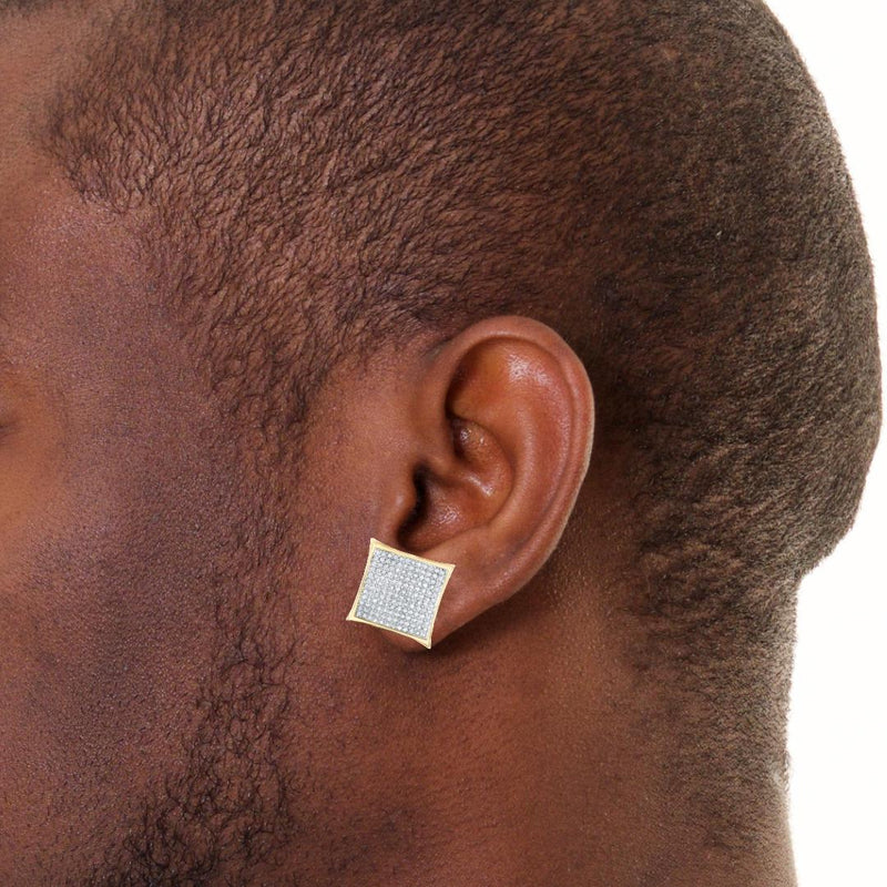 10K Gold and Diamond Square Screw Back Earrings - 1/20 CT, 5mm