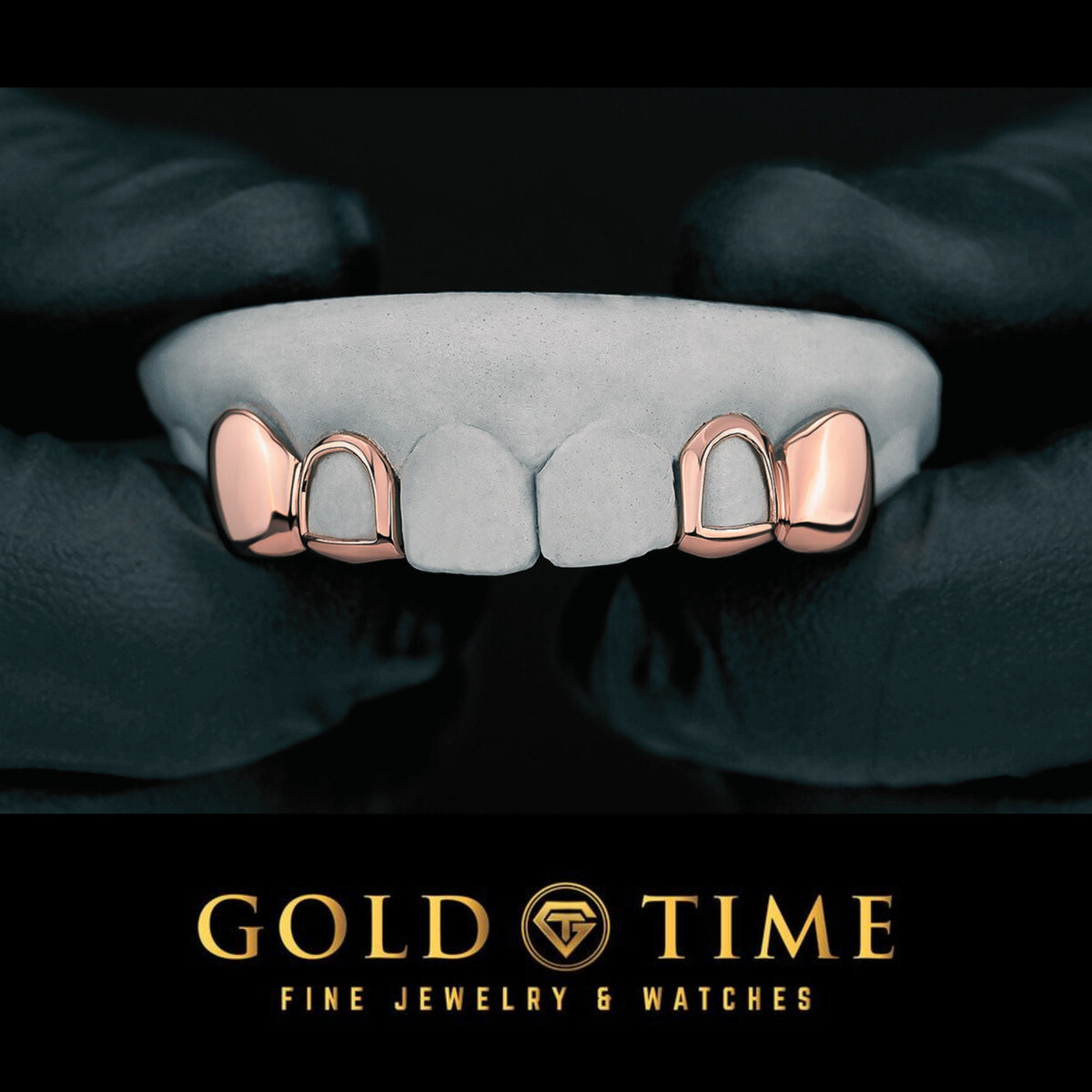 Custom Double Cap Grillz Open Face Incisor Solid Canine - Silver, 10k, 14k Gold - Includes Free Impression Kit - Yellow, White, Rose Options
