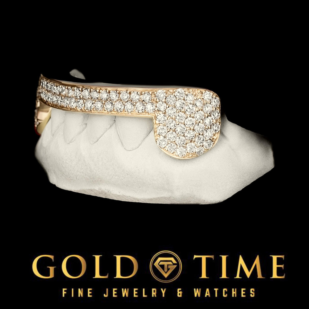 - Fully bustdown 6-piece grill with honeycomb moissanite canines and double-row moissanite tip