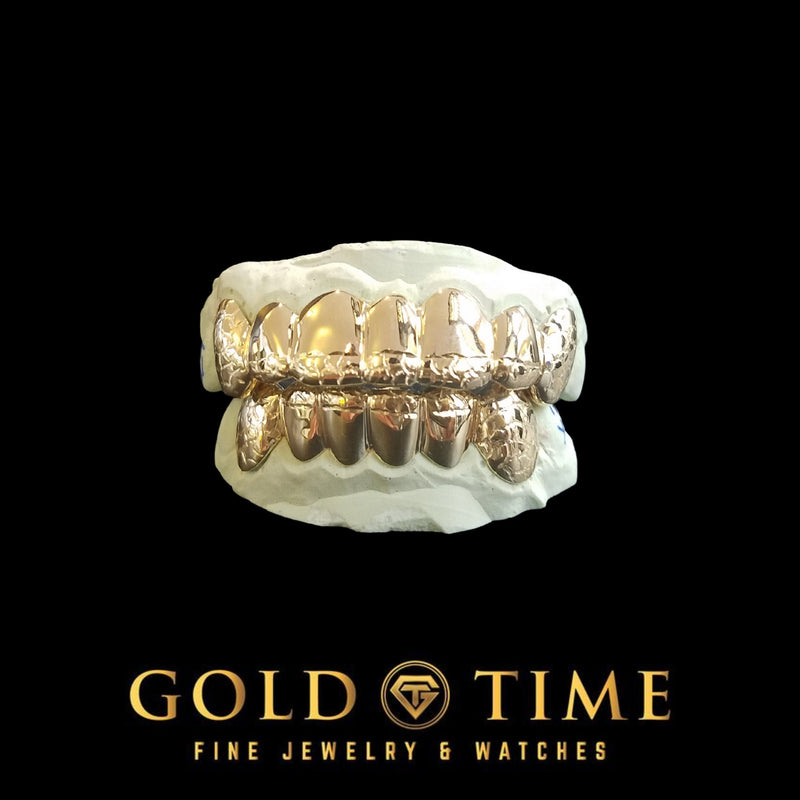 Custom Full 12 Piece Grillz Set with Nugget Front Tips & Canines - Solid Teeth Design - Made to Order - Gold or Silver Custom Grillz