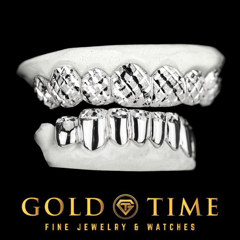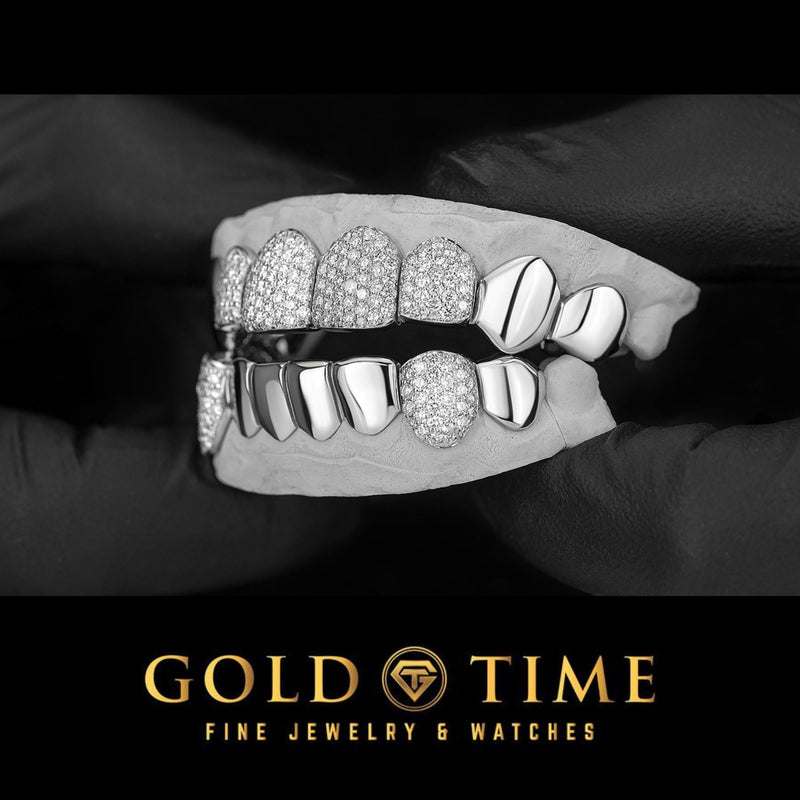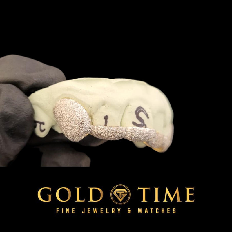 12 Piece Custom Two-Tone Diamond Dust Box Grillz Set Yellow & White Gold or Silver Handmade Grillz with Kit by Gold Time