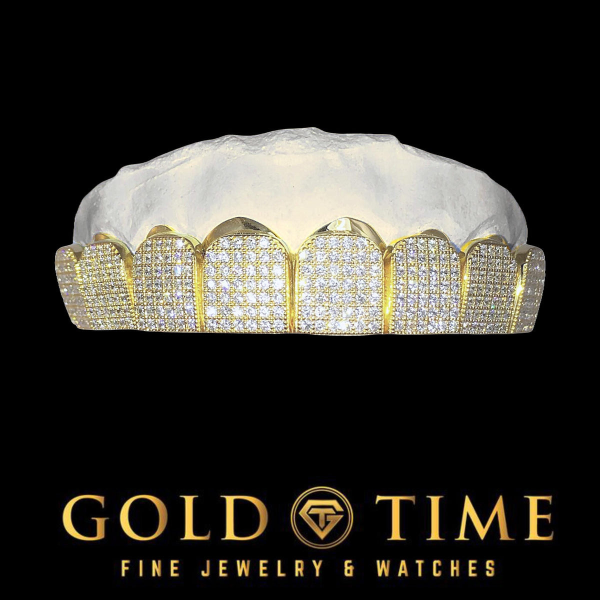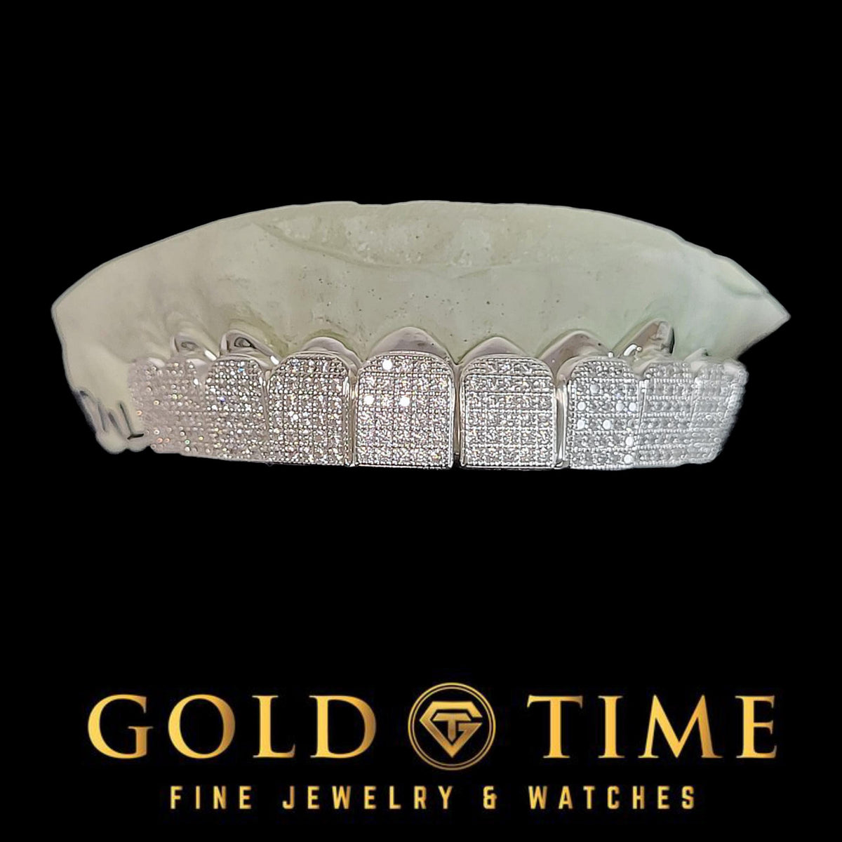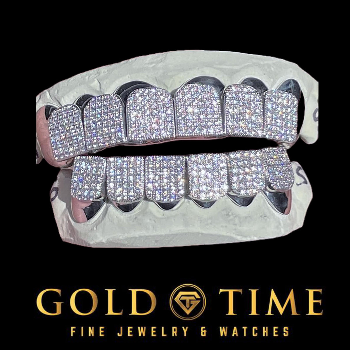 - Custom 6 or 8-piece grillz with a fully iced-out CZ block design