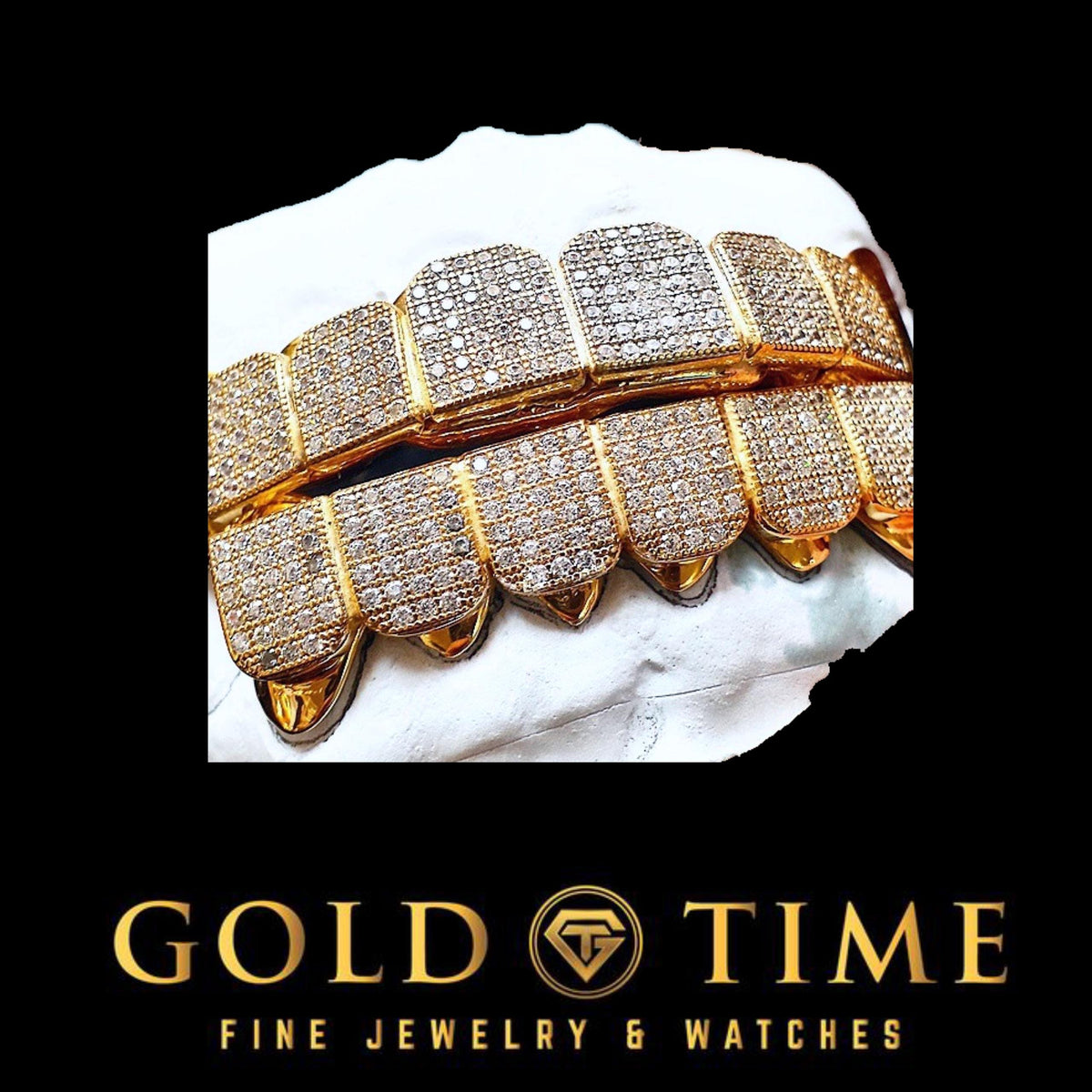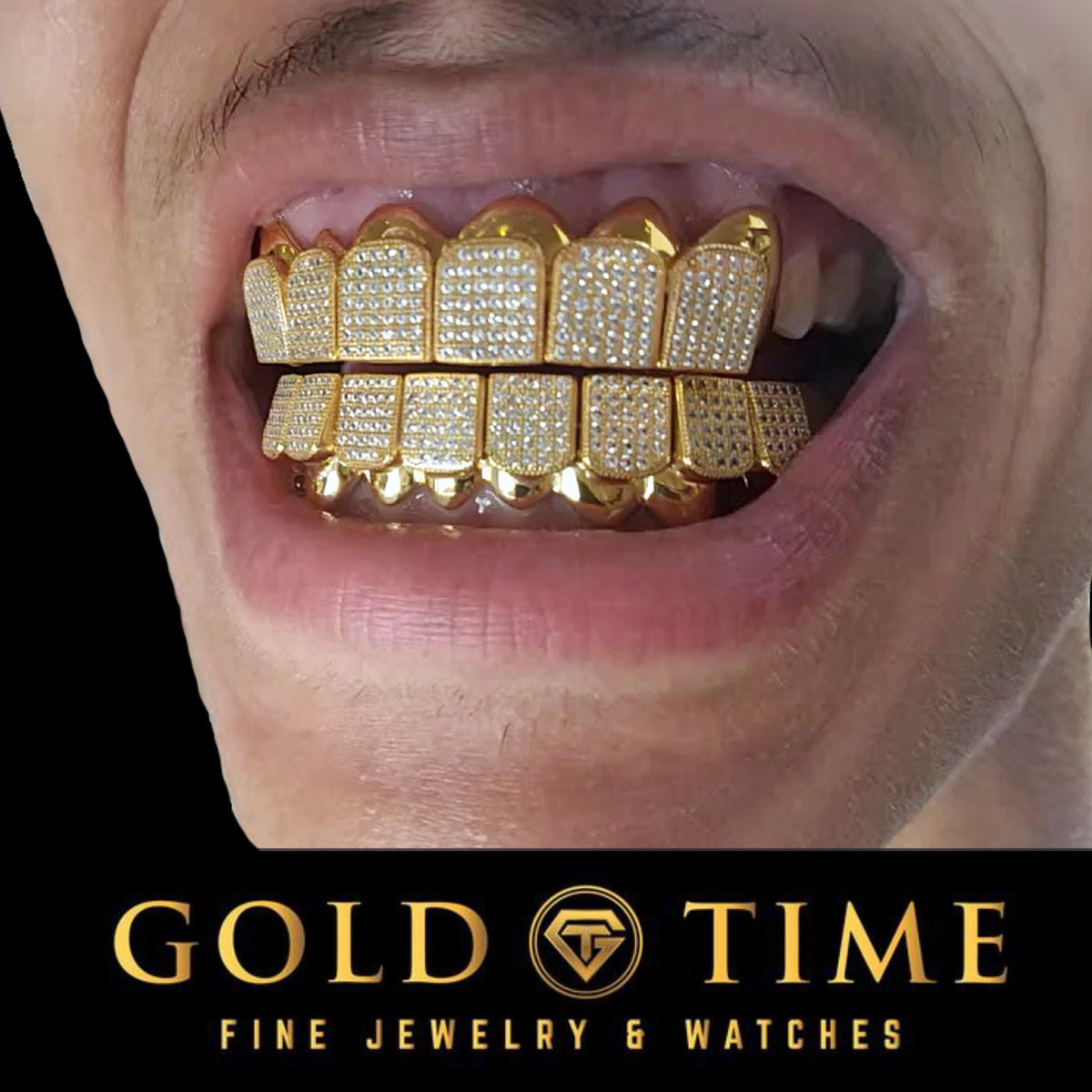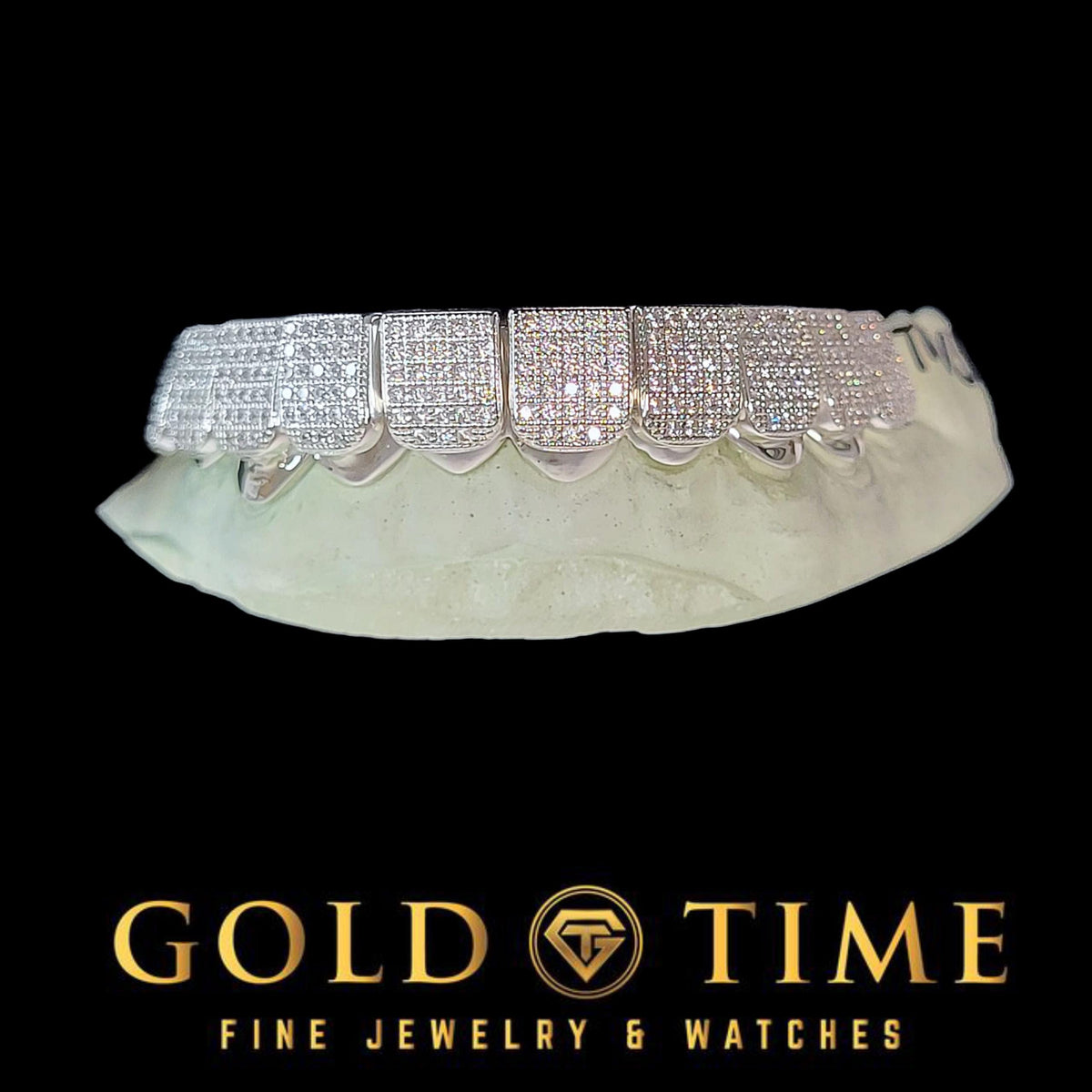 - Custom 6 or 8-piece grillz with a fully iced-out CZ block design