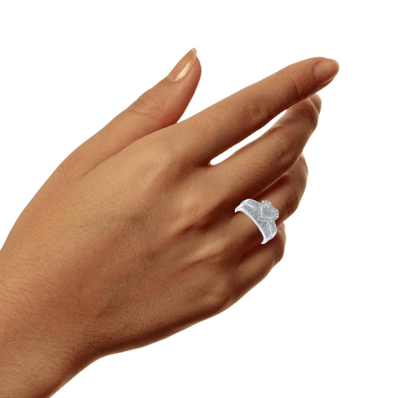 Heart-Shaped Sterling Silver Diamond Bridal Wedding Set for Women | Split Shank Halo Design | Promise Engagement Ring & Band Set