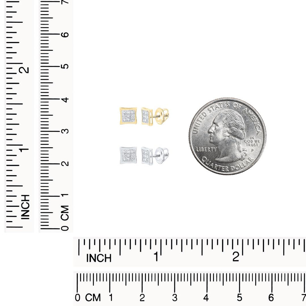 Crafted from solid 10K gold and set with natural round pave-set diamonds, these square studs deliver eye-catching sparkle and long-lasting durability. Their 5mm kite-inspired shape gives a fresh, modern twist to the classic diamond stud, designed for both men and women who appreciate fine craftsmanship and understated shine.