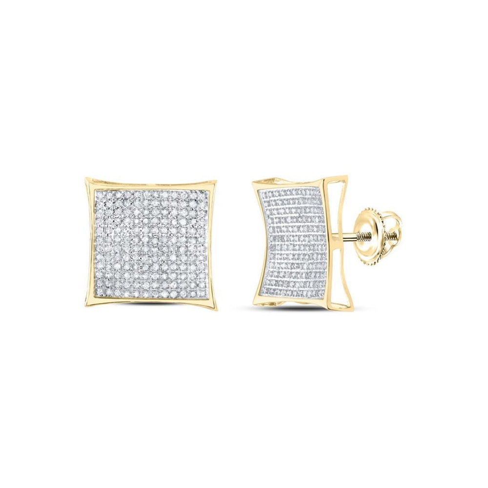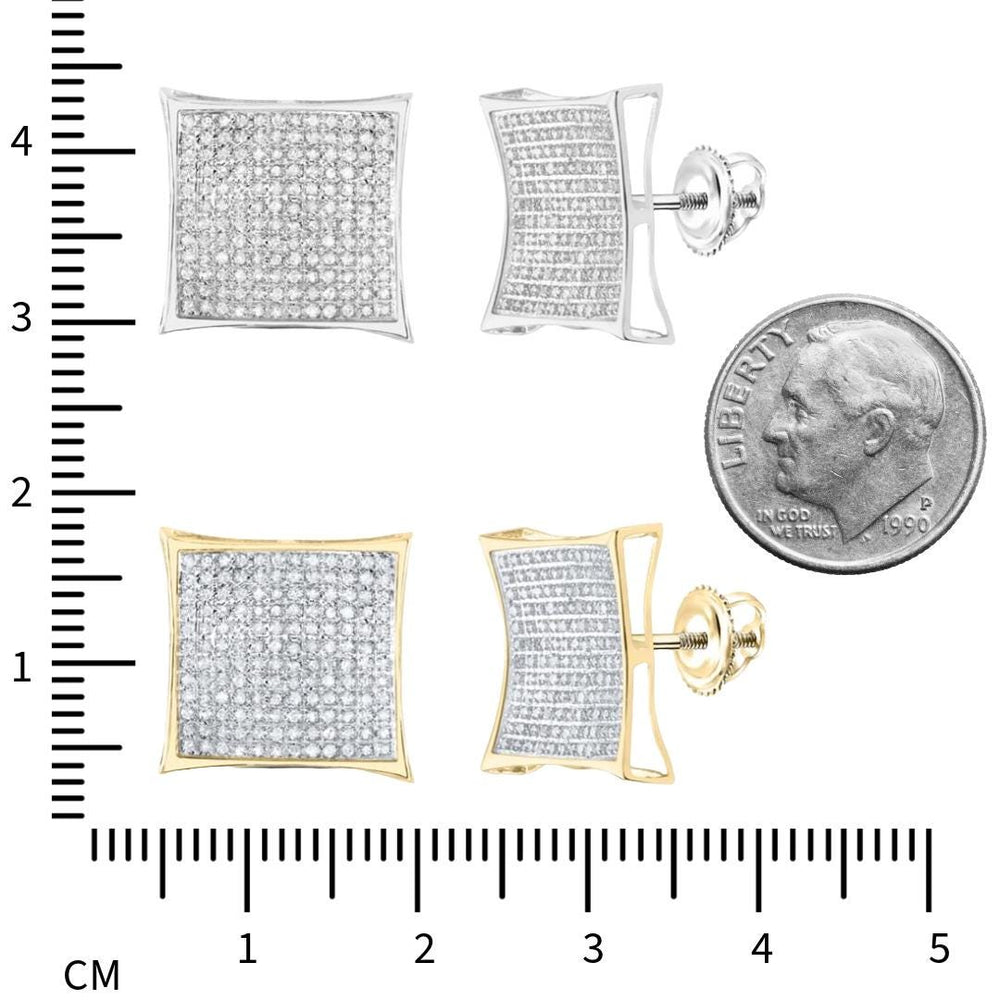 10K Gold Diamond Kite Earrings 7/8 CTTW Micro-Pavé Square Studs Natural Diamonds, 10K Yellow or White Gold, 15.5mm