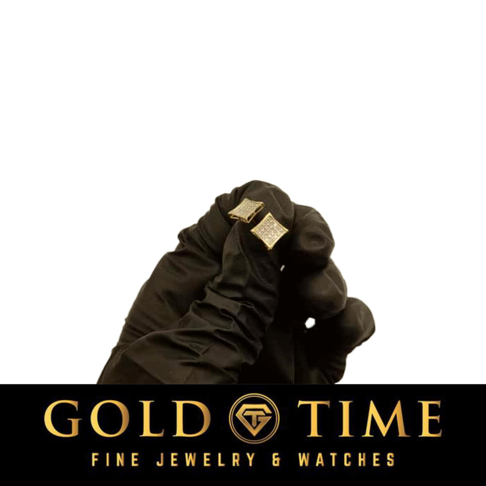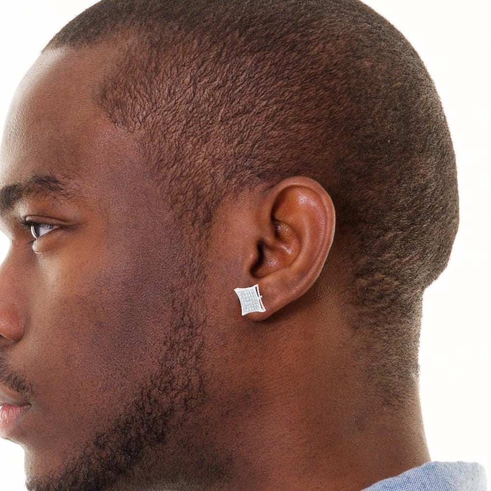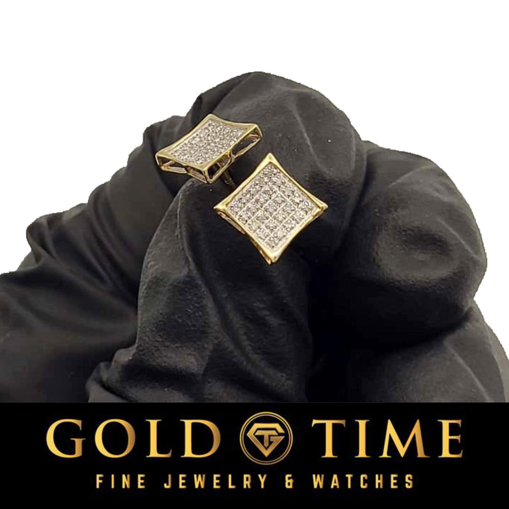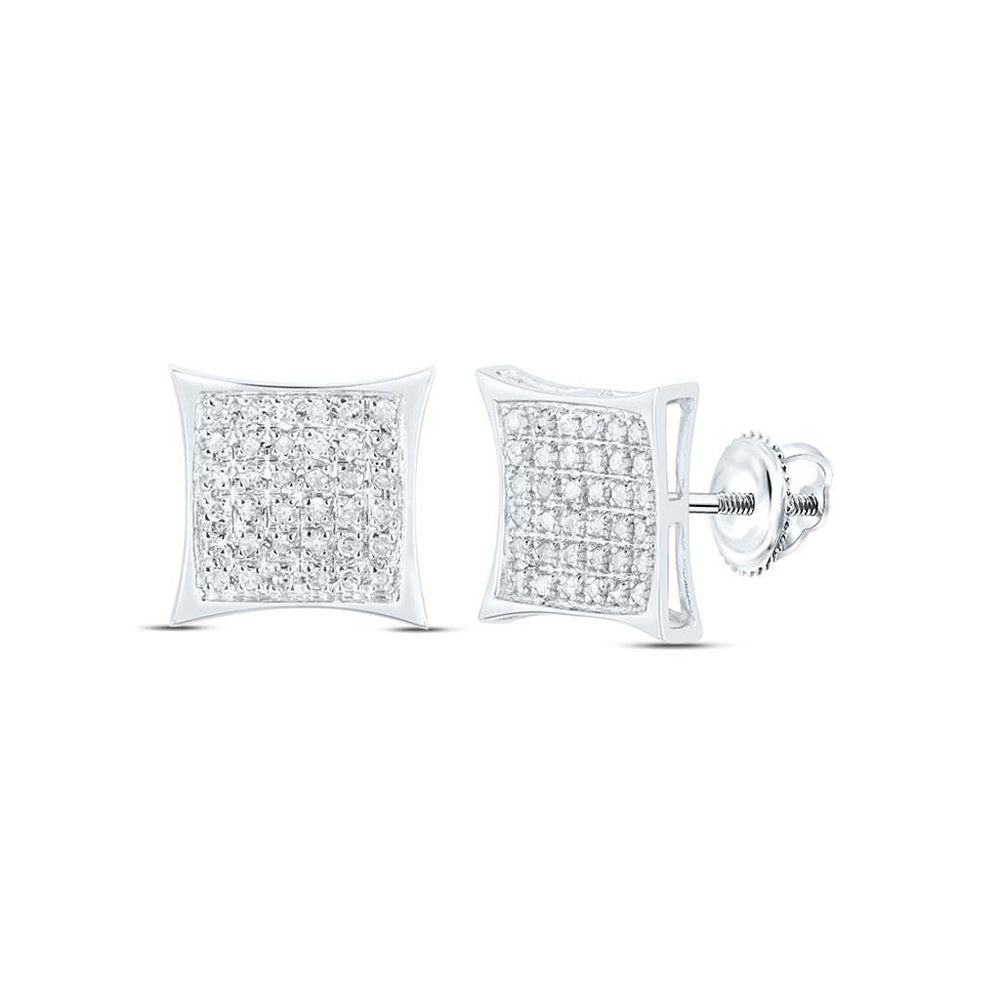 10K Gold Diamond Kite Square Earrings White or Yellow Gold 1/6 CTW Micro-Pavé Studs for Men or Women 10mm with Gift Box