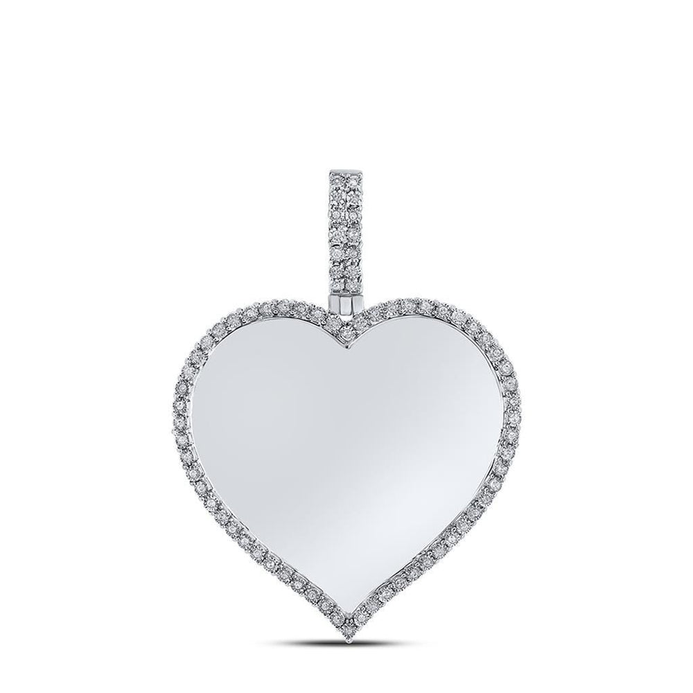 Celebrate cherished memories with this stunning 10K gold heart pendant, accented with 1/5 carat total weight of natural, conflict-free diamonds in a prong setting. Designed to hold your most meaningful photo in full color or black and white, this 45mm x 36mm pendant offers a personalized and timeless way to honor your loved ones. With its exquisite craftsmanship and approximately 3.3 grams total weight, this pendant is perfect for commemorating special moments, from anniversaries to memorials. Available in yellow, white, or rose gold, it comes beautifully packaged in a gift box, making it the ultimate keepsake or heartfelt gift. Chain sold separately.