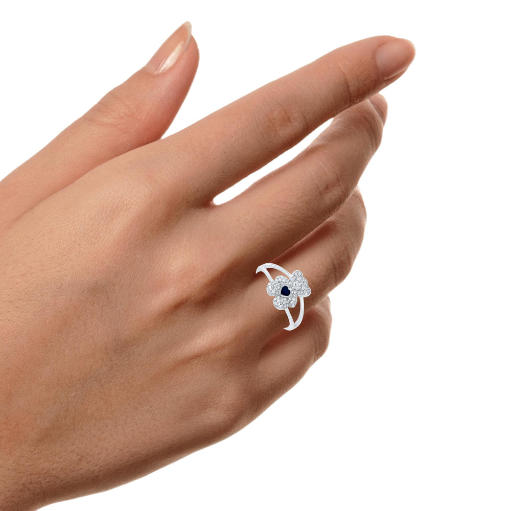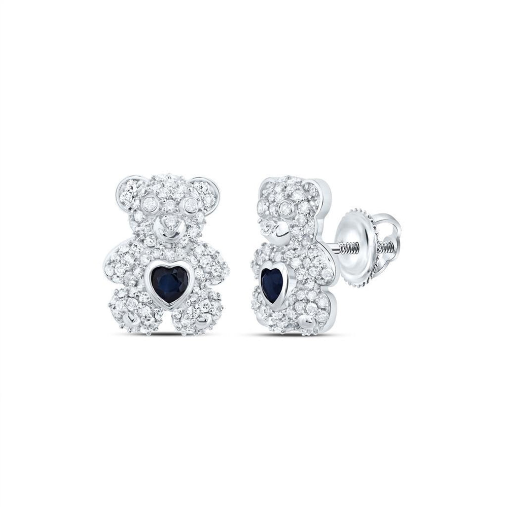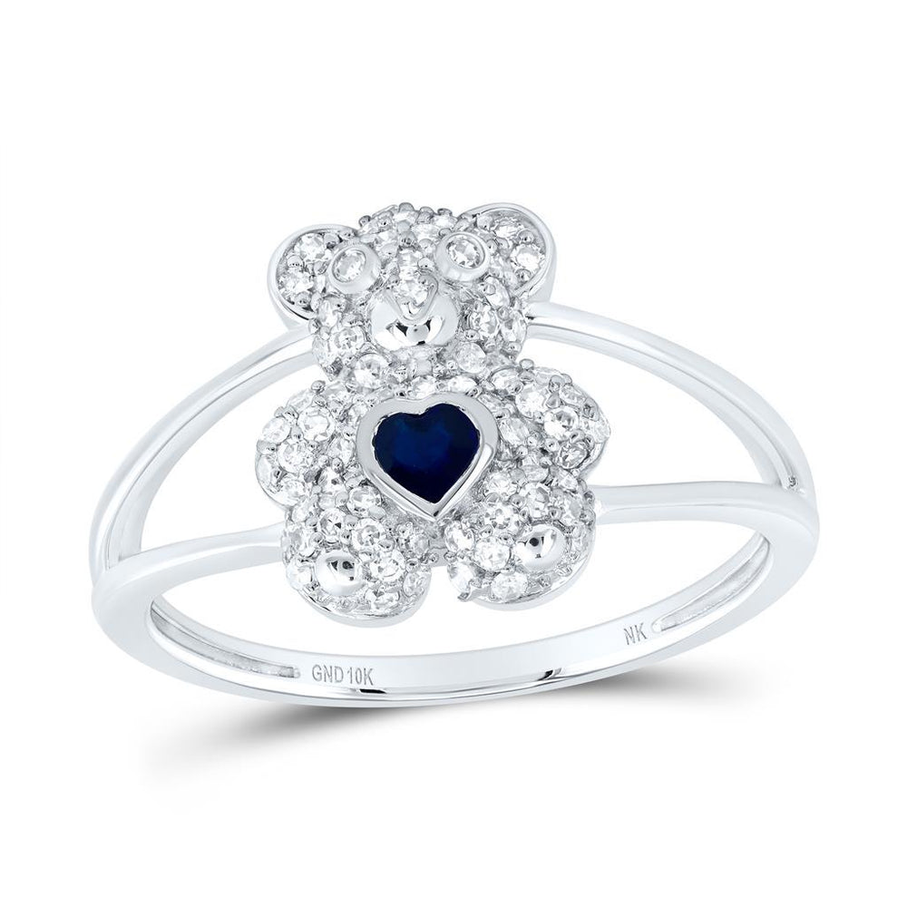 Add a playful sparkle to your fine jewelry collection with this stunning 10k White Gold Teddy Bear Jewelry Set featuring natural diamonds and a deep blue heart-shaped natural sapphire. This beautifully crafted set includes a diamond-studded teddy bear pendant, a matching ring, and stud earrings—each detailed with a 3mm x 3mm heart-cut sapphire center and a dazzling display of round natural diamonds.