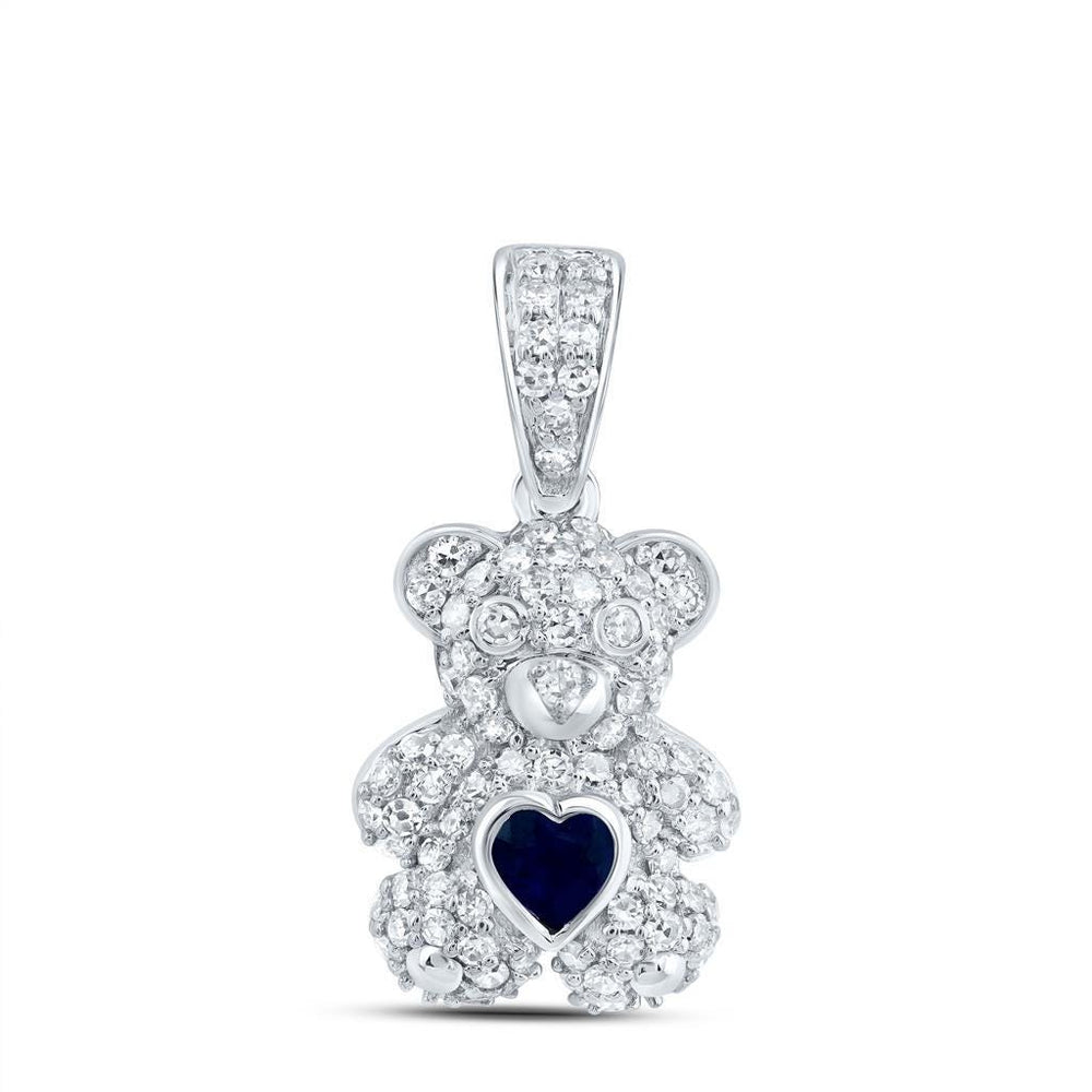 - 10k white gold teddy bear design with natural diamonds and sapphire