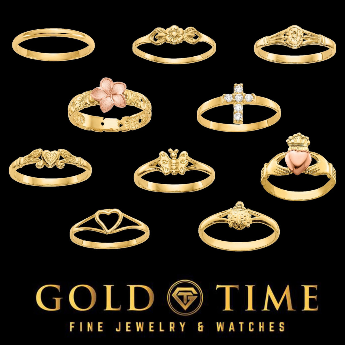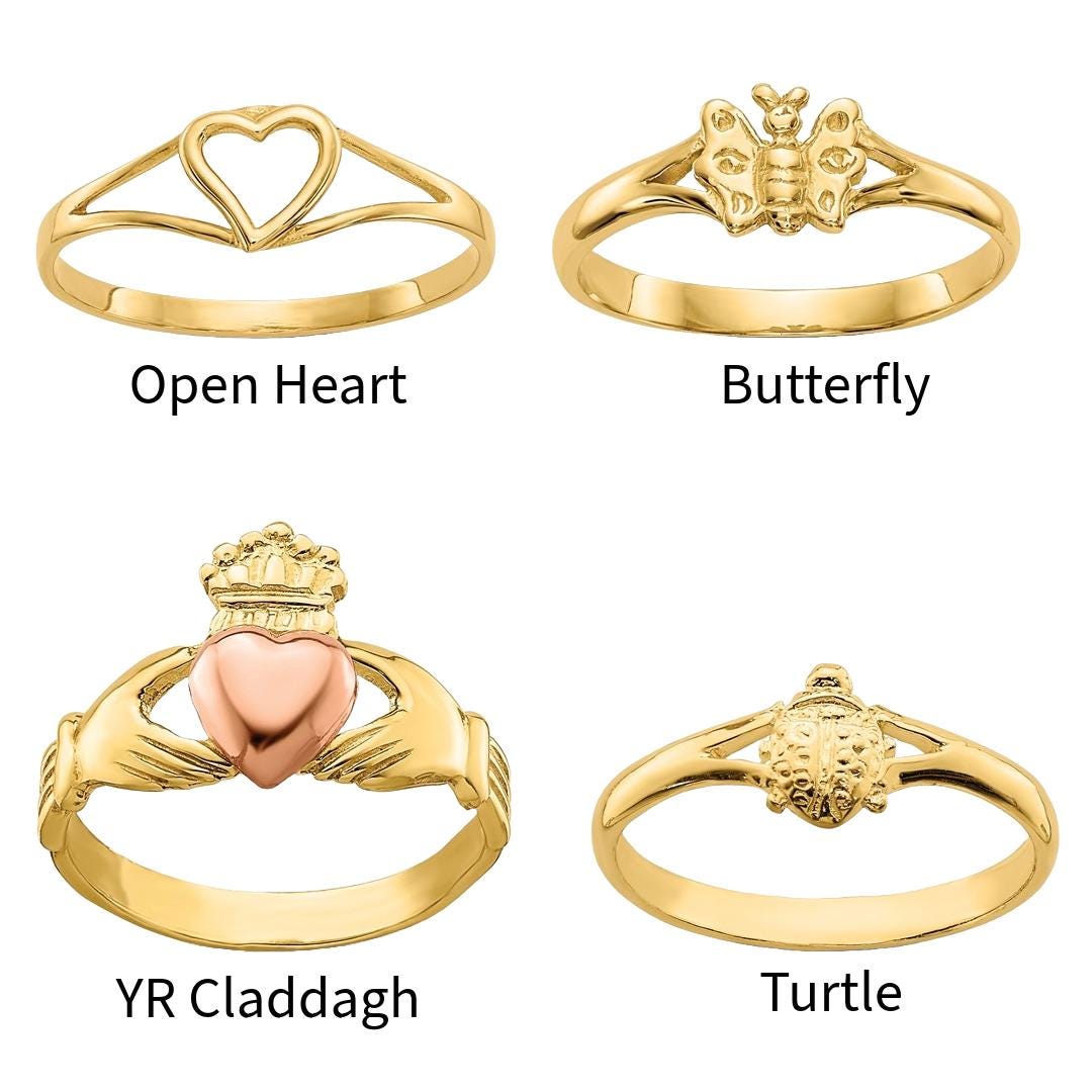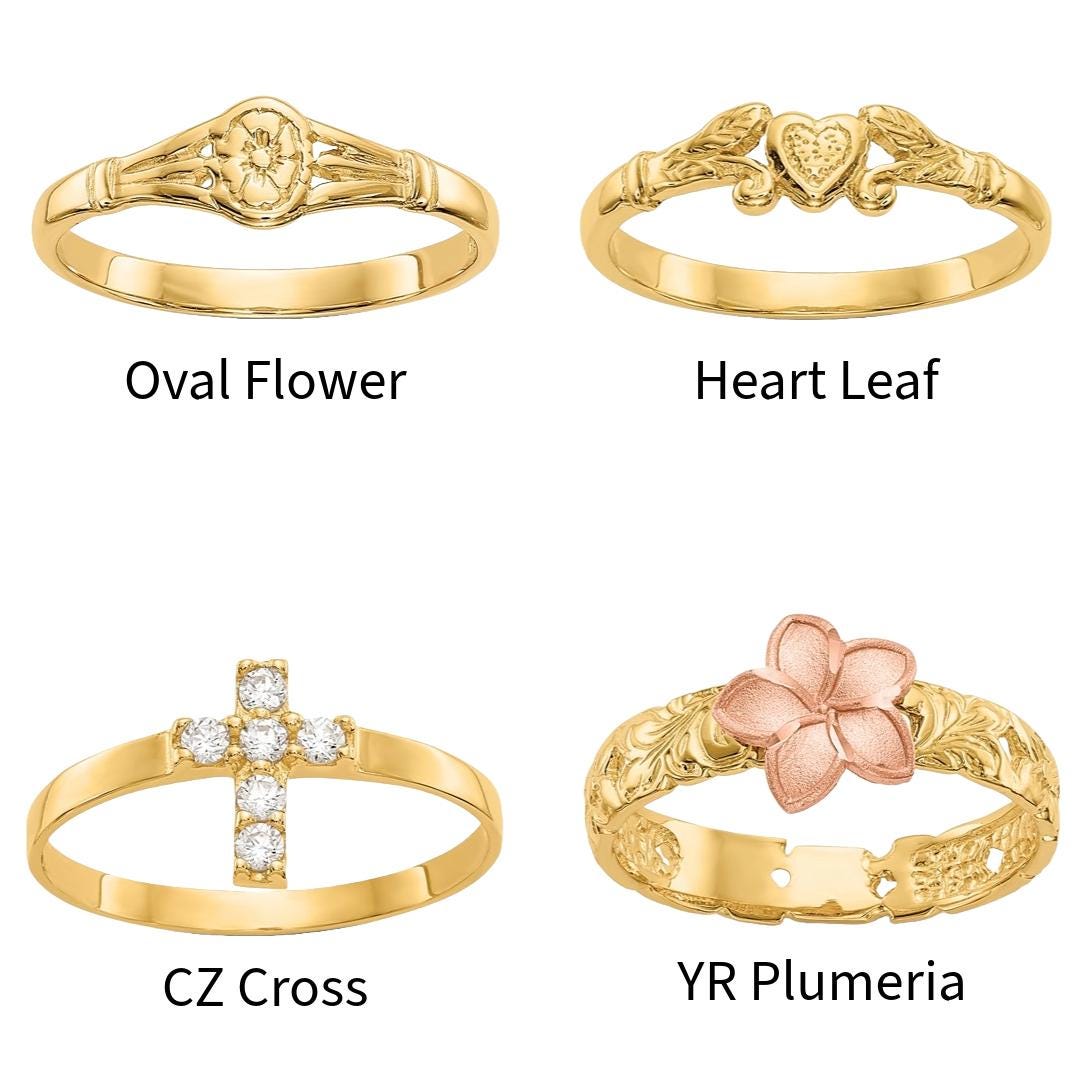 Celebrate your child’s milestones with our 14k Yellow Gold Baby & Children’s Rings, beautifully crafted to mark life’s sweetest moments. Available in sizes 1 through 5, these dainty real gold rings are perfect for babies, toddlers, and young children. Choose from a variety of meaningful and adorable designs such as plumeria, heart, cross, butterfly, turtle, claddagh, floral, and more—each symbolizing love, growth, protection, or faith.