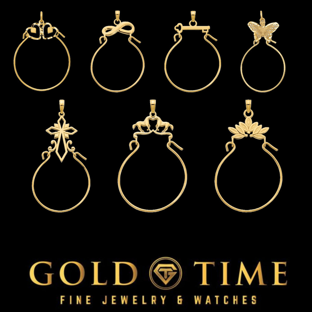14K Gold Charm Holder Pendant Butterfly, Cross, Heart Key & More 40mm Length Fine Jewelry for Charms Multiple Design Options