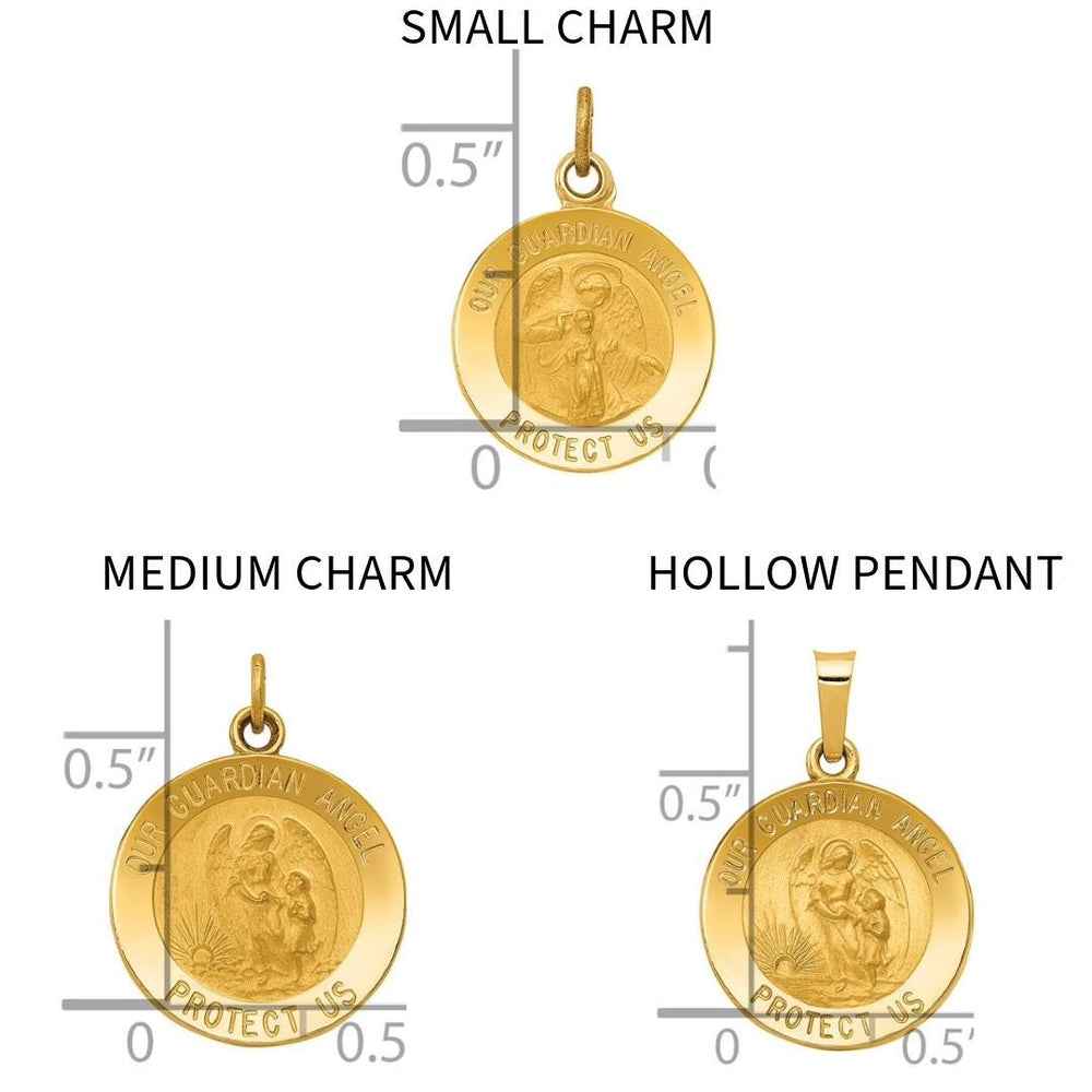 14K Gold Guardian Angel Pendant Engravable Medal Charm Small, Medium or Large Religious Jewelry Gift Solid or Hollow Options