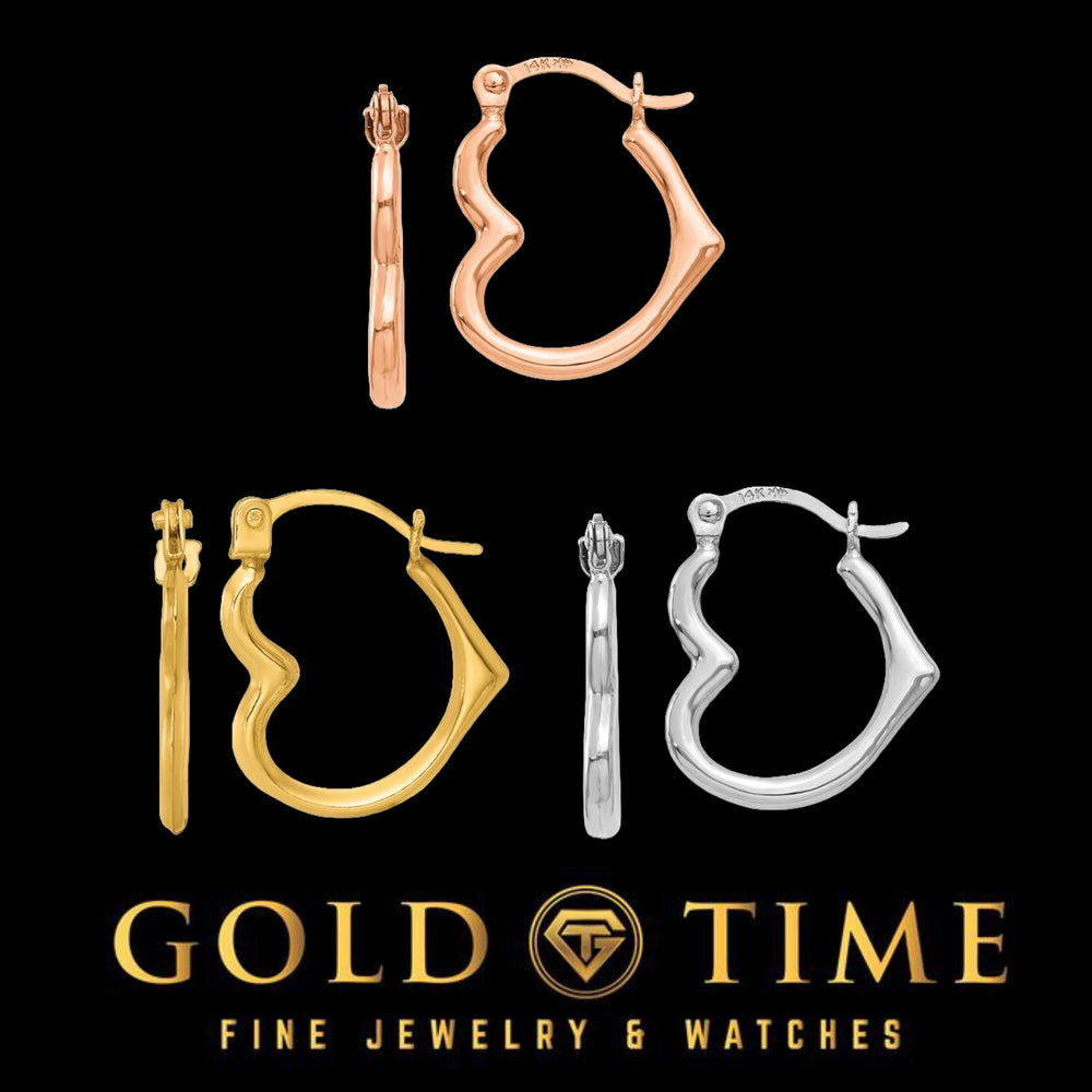 14K Gold Small Heart Hoop Earrings for Women - Available in Yellow, White, or Rose Gold, 15mm Length, Hollow