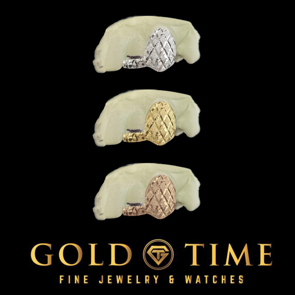 This piece features a premium blend of sparkle and edge with your choice of silver, gold plated, or solid gold in yellow, white, or rose. Each grill is handmade and tailored to your exact impression, ensuring the perfect fit and look.