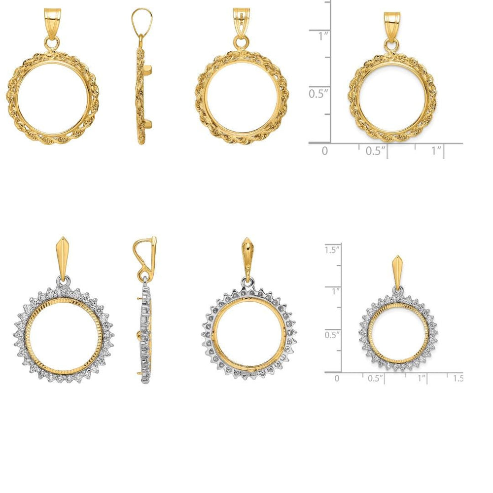 Own a timeless piece of American heritage with this handcrafted 22k American Eagle Gold Coin Pendant, set in your choice of 14k gold bezel. Featuring a 1/10 oz genuine 22k American Eagle coin, this piece is the perfect fusion of precious metal value and fine jewelry design. With four unique bezel styles available, including a diamond-edge bezel set with natural VS2 clarity diamonds, this pendant is a show-stopping gift or personal keepsake.