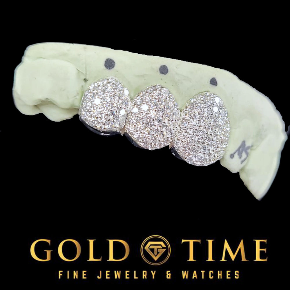 - Custom 3-piece grillz with handset honeycomb moissanite stones