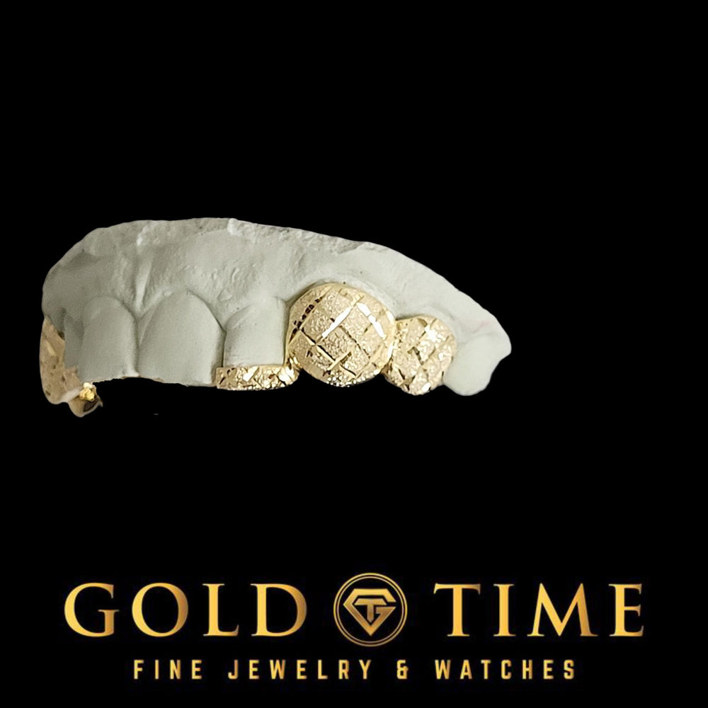 Custom 3-Piece Gold Grillz with Diamond-Cut and Trillion Dust - Handmade Personalized Grill - Solid Gold & Silver Options