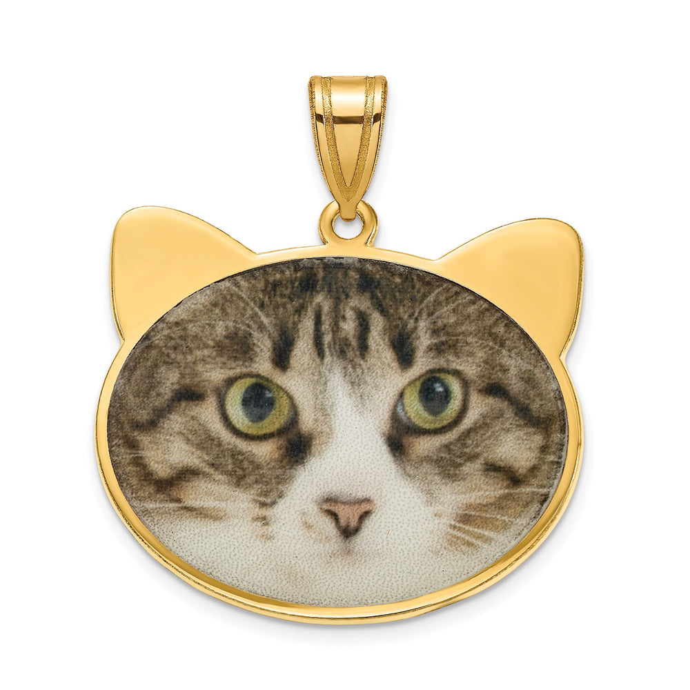 Keep your furry friend close to your heart with this custom cat photo pendant, available in sterling silver or gold-plated sterling silver. Whether you‘re celebrating a beloved pet or honoring their memory, this personalized piece turns your favorite photo, drawing, or painting into a wearable keepsake.