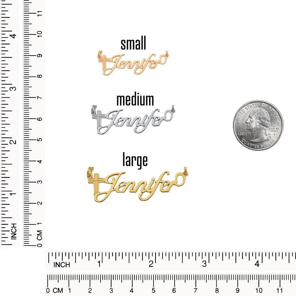 Designed with a polished cross integrated seamlessly into the first letter of the name, each necklace is custom made just for you—crafted in your choice of sterling silver, gold plated, rose plated, 10k, or 14k solid gold. The graceful cursive font and polished finish give it a bold yet clean look that pairs beautifully with everyday wear or special occasion outfits.