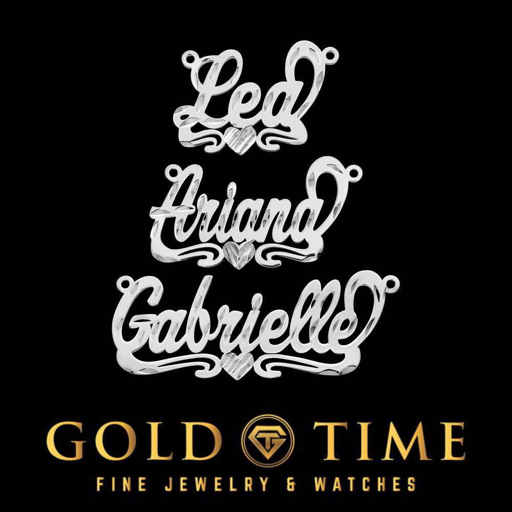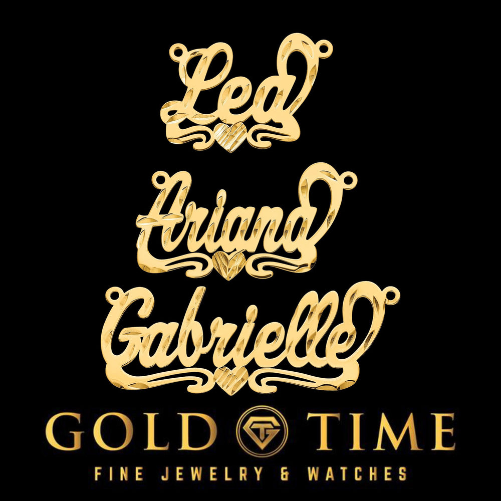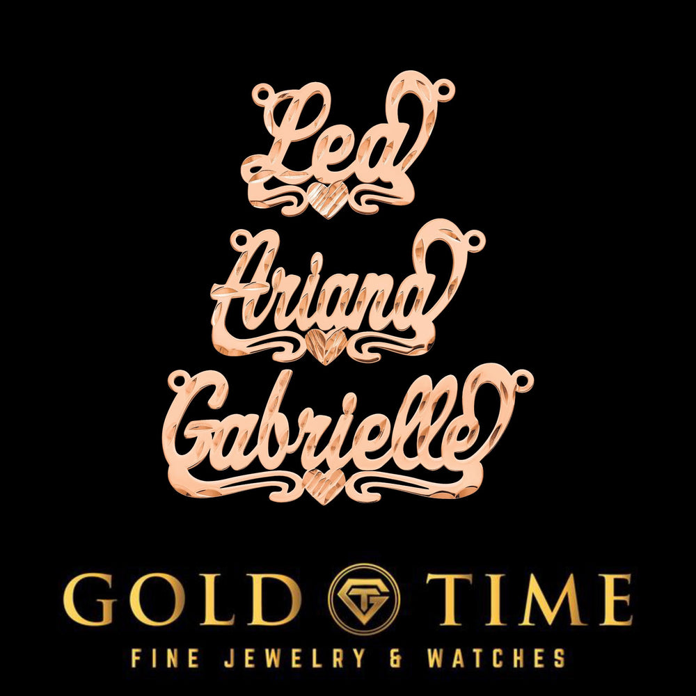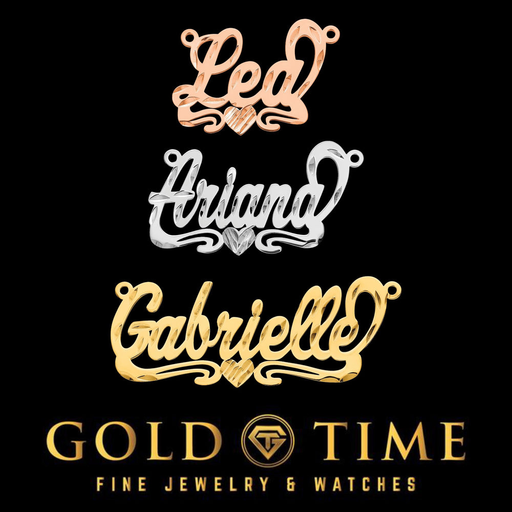 This handmade, made-to-order heart nameplate necklace is crafted to express your unique identity in precious metals that last a lifetime. Designed in a cursive script with diamond-cut detailing and a center heart accent, this pendant is available in your choice of sterling silver, gold-plated silver, rose gold-plated silver, 10k yellow or white gold, or 14k yellow, white, or rose gold.