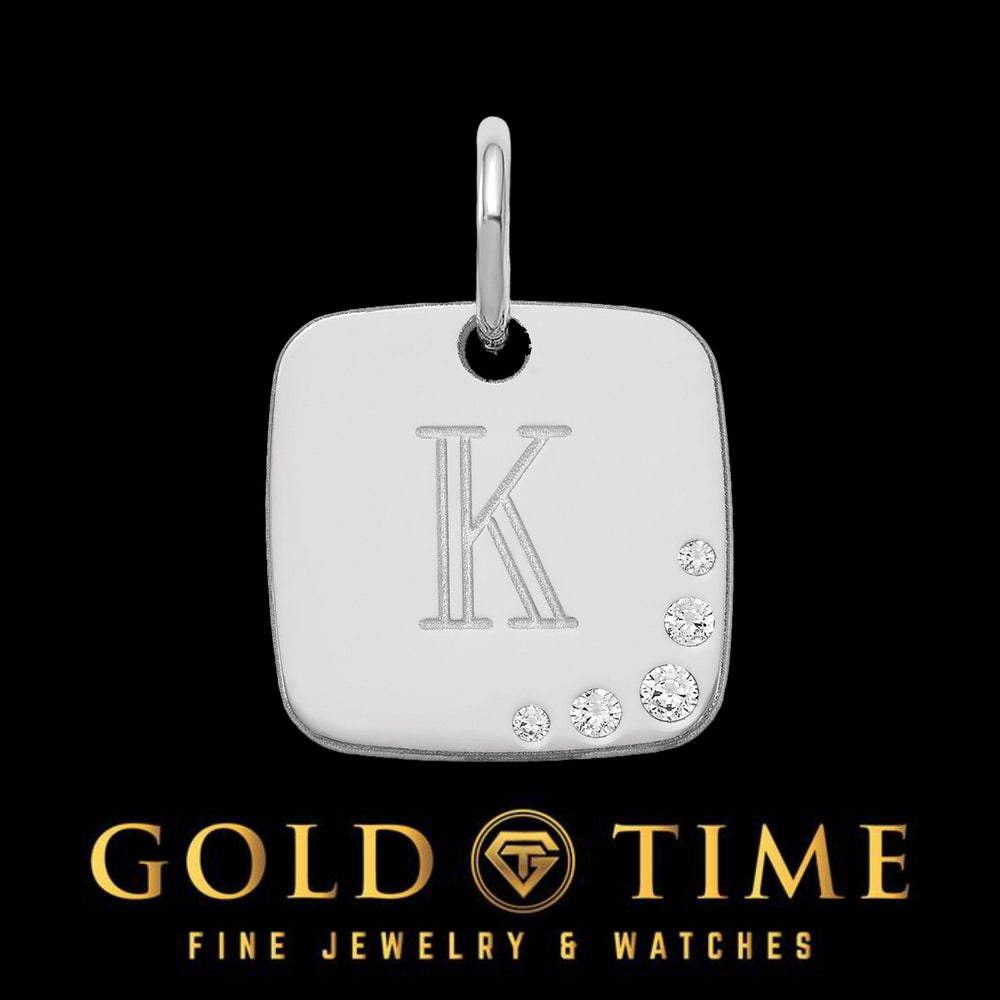 Custom Diamond Initial Pendant Charm Cushion Letter Charm in Silver or Gold Personalized Jewelry Gift, .02 CTTW, Dainty Design