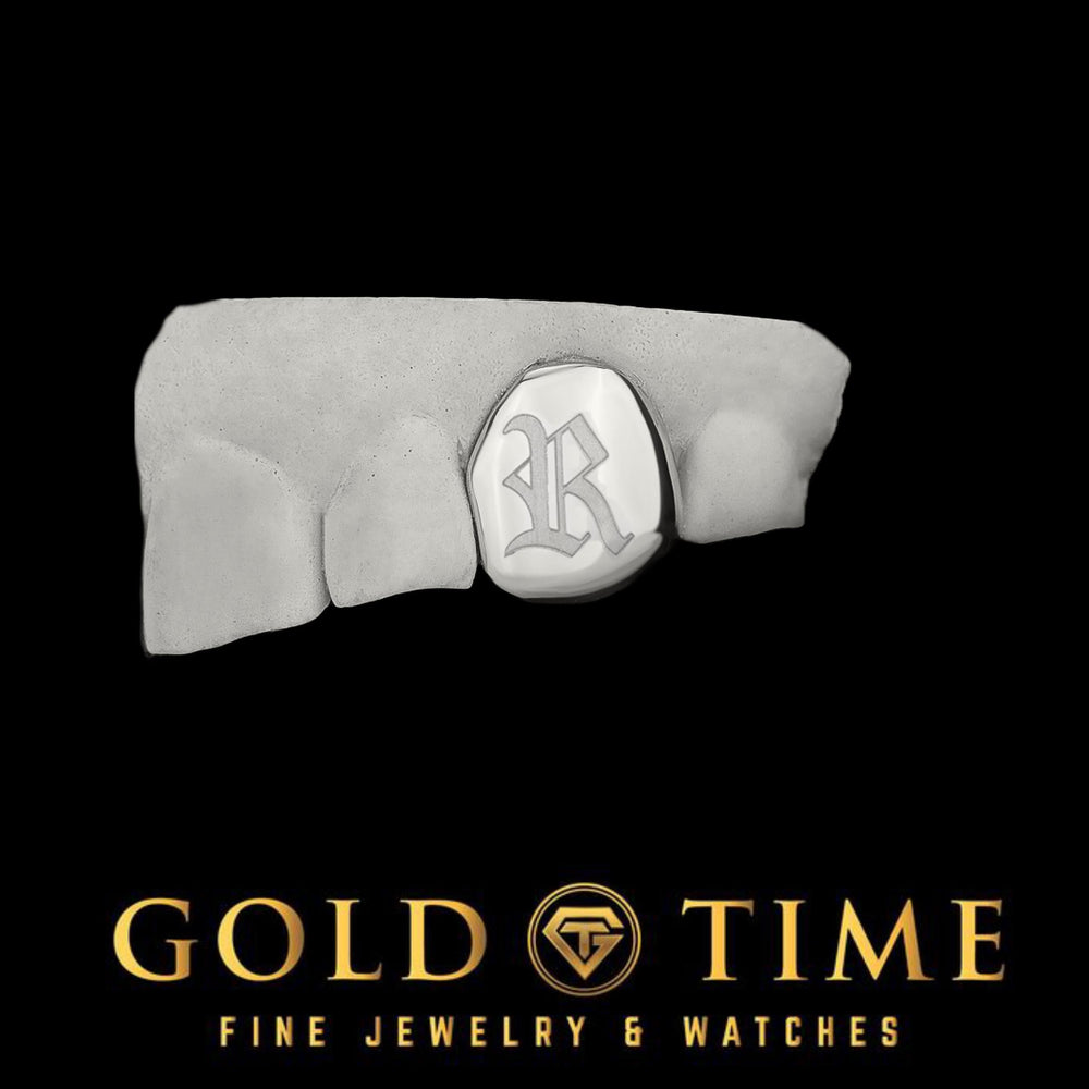 Custom Grillz - Single Cap with Custom Gothic Old English Letter Engraving