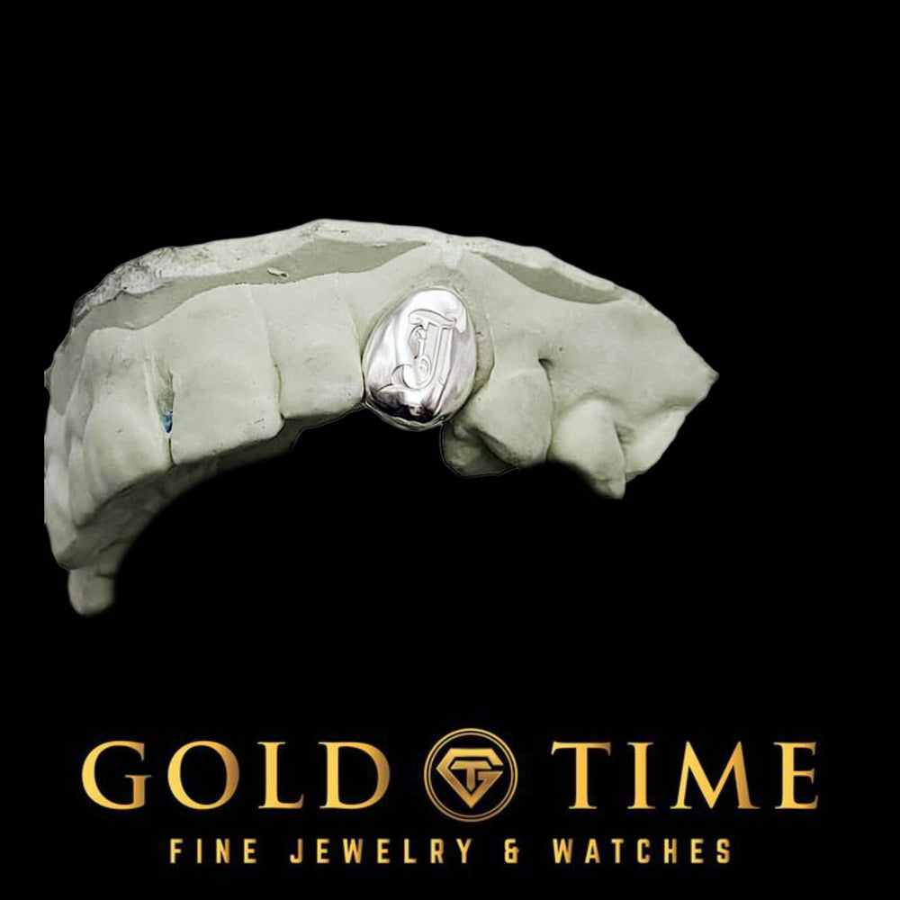 Make a bold statement with this custom handmade single cap grill, designed to feature a letter in gothic Old English font. Perfectly crafted to fit comfortably and securely, this personalized grill is made from high-quality materials and includes a professional impression kit to ensure a precise fit.