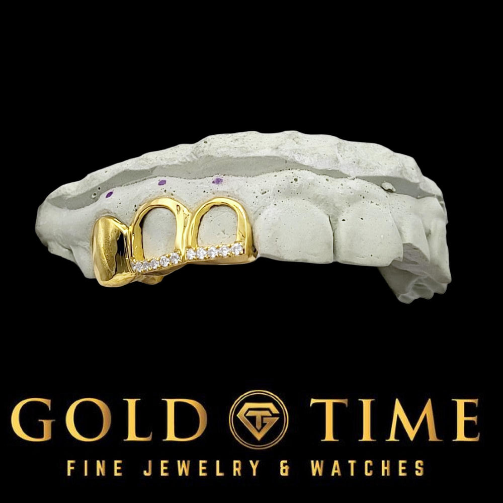 Step up your style with this one-of-a-kind triple cap grillz set featuring two open face teeth with shimmering moissanite tips and a solid bicuspid. Handmade to order and fully customizable, this set offers a bold, polished look with clean lines and high-end detail. Whether you‘re looking to make a statement or personalize your look, this custom piece delivers unbeatable craftsmanship and style.