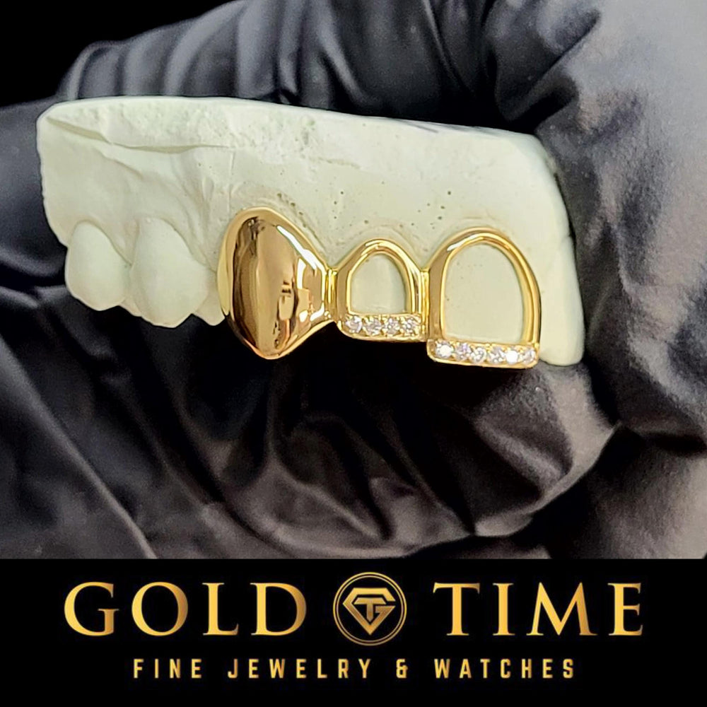 Custom Grillz - Triple Cap with Open Face Moissanite Tips, Solid Cap