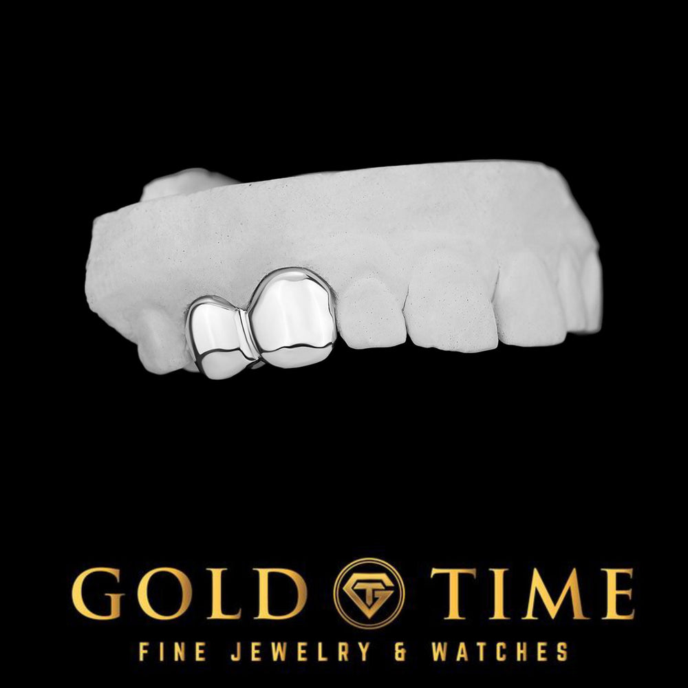 Upgrade your smile with this custom-made solid double cap grill, handcrafted to fit your teeth with precision and style. This two-tooth grillz design is perfect for those who want a clean, classic look with bold impact. Made to order using your personal impressions, each grill is shaped for comfort and designed to stand out.