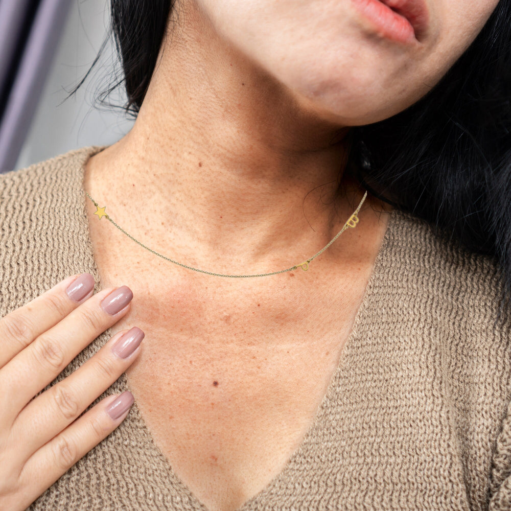 Celebrate your style with this Custom Initial or Symbol Necklace — a dainty, personalized piece designed to showcase your favorite letters or symbols. Whether worn with a single charm or a combination of up to five, this necklace makes a subtle yet meaningful statement.