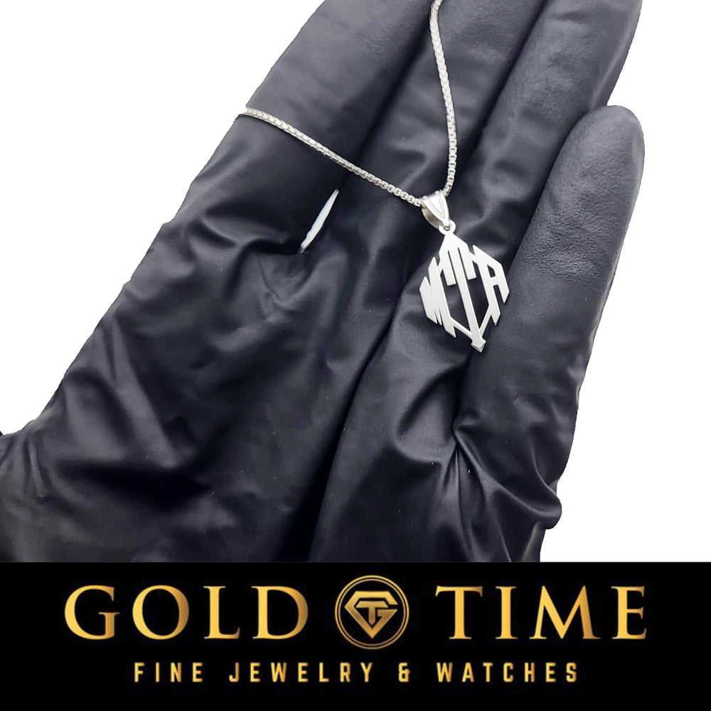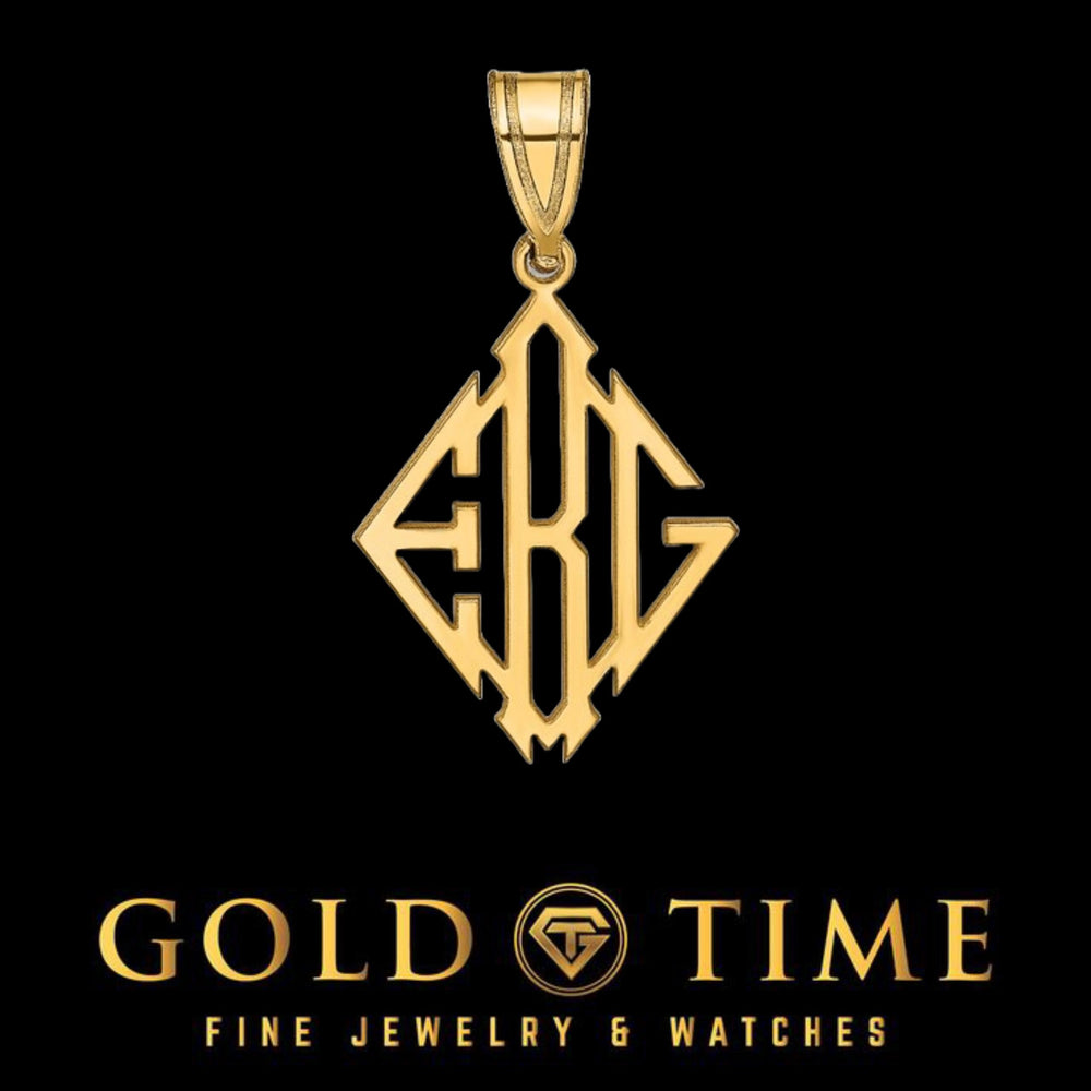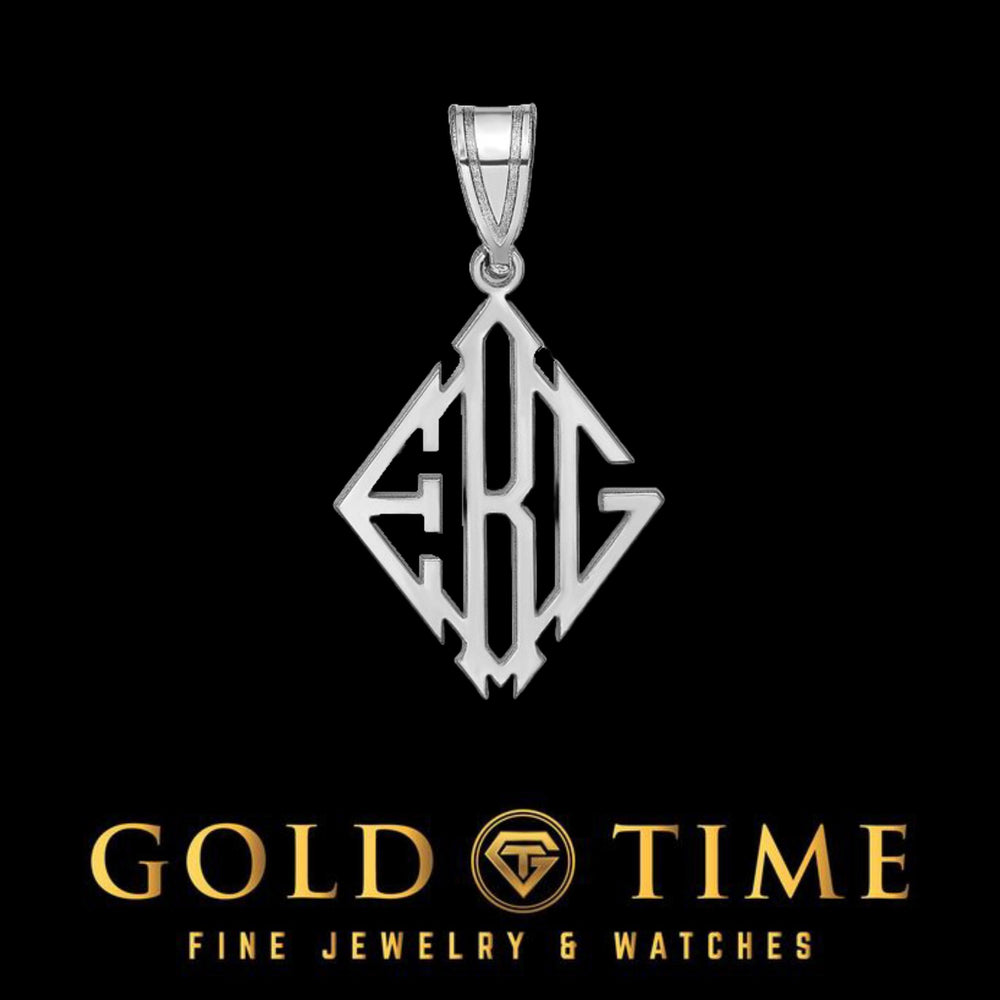 Make your mark with this bold, personalized diamond-shaped monogram pendant—custom-crafted just for you or someone special. Designed with precision and pride, this pendant features up to three initials in a sharp, geometric style. Whether you‘re commemorating a name, a couple‘s initials, or a meaningful set of letters, this pendant is a powerful way to keep that symbolism close to your heart.