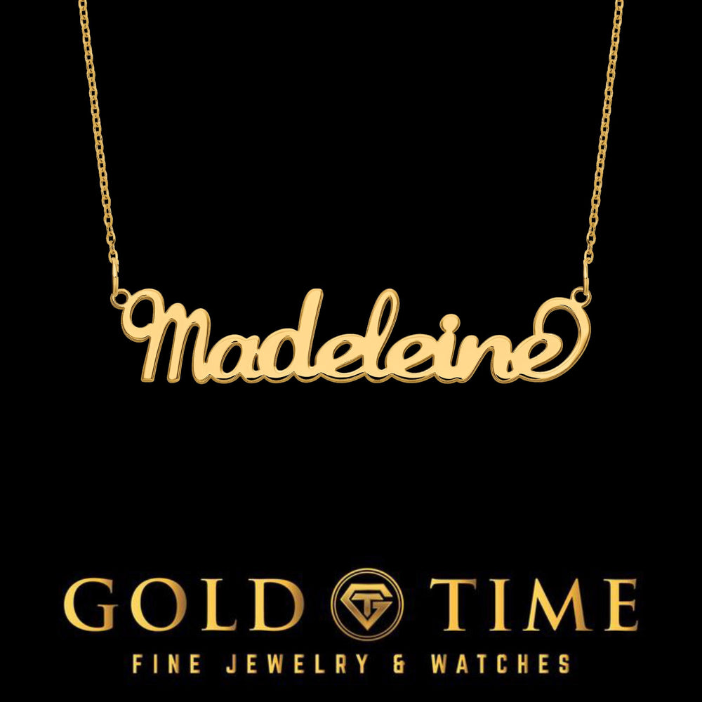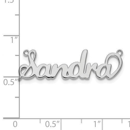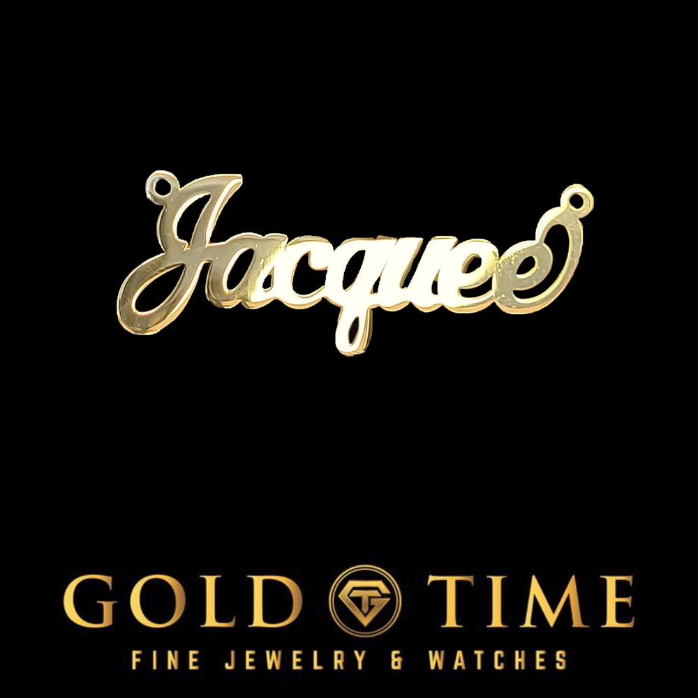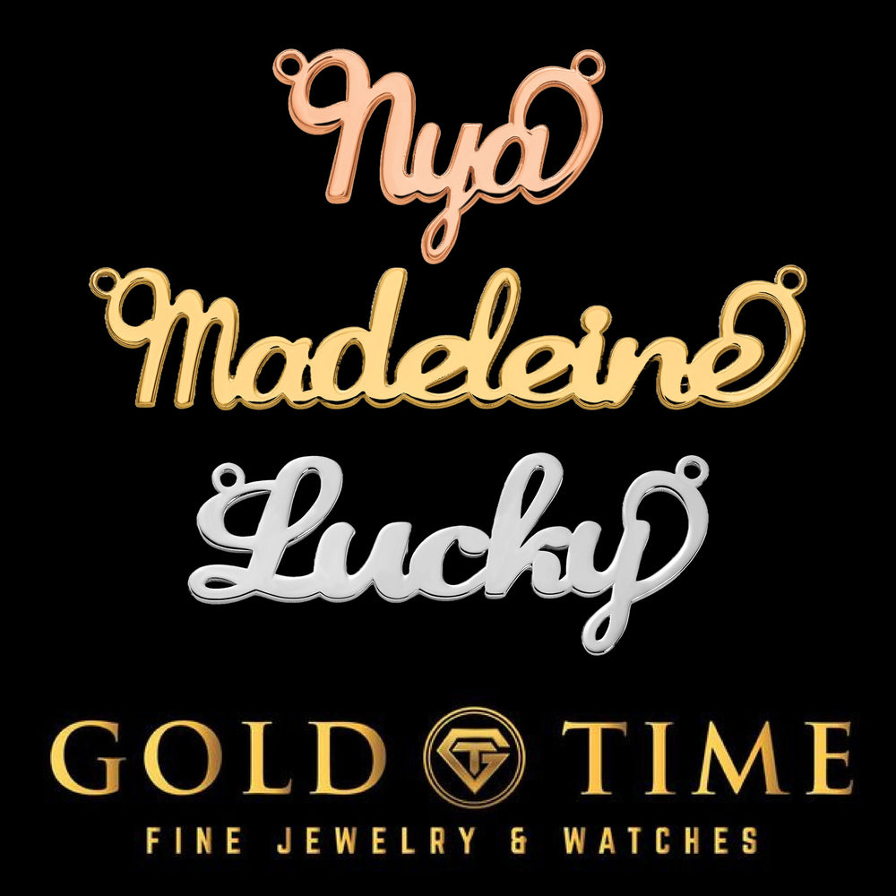 - Pendant approx. 10mm tall; width varies with name length (up to 9 letters)