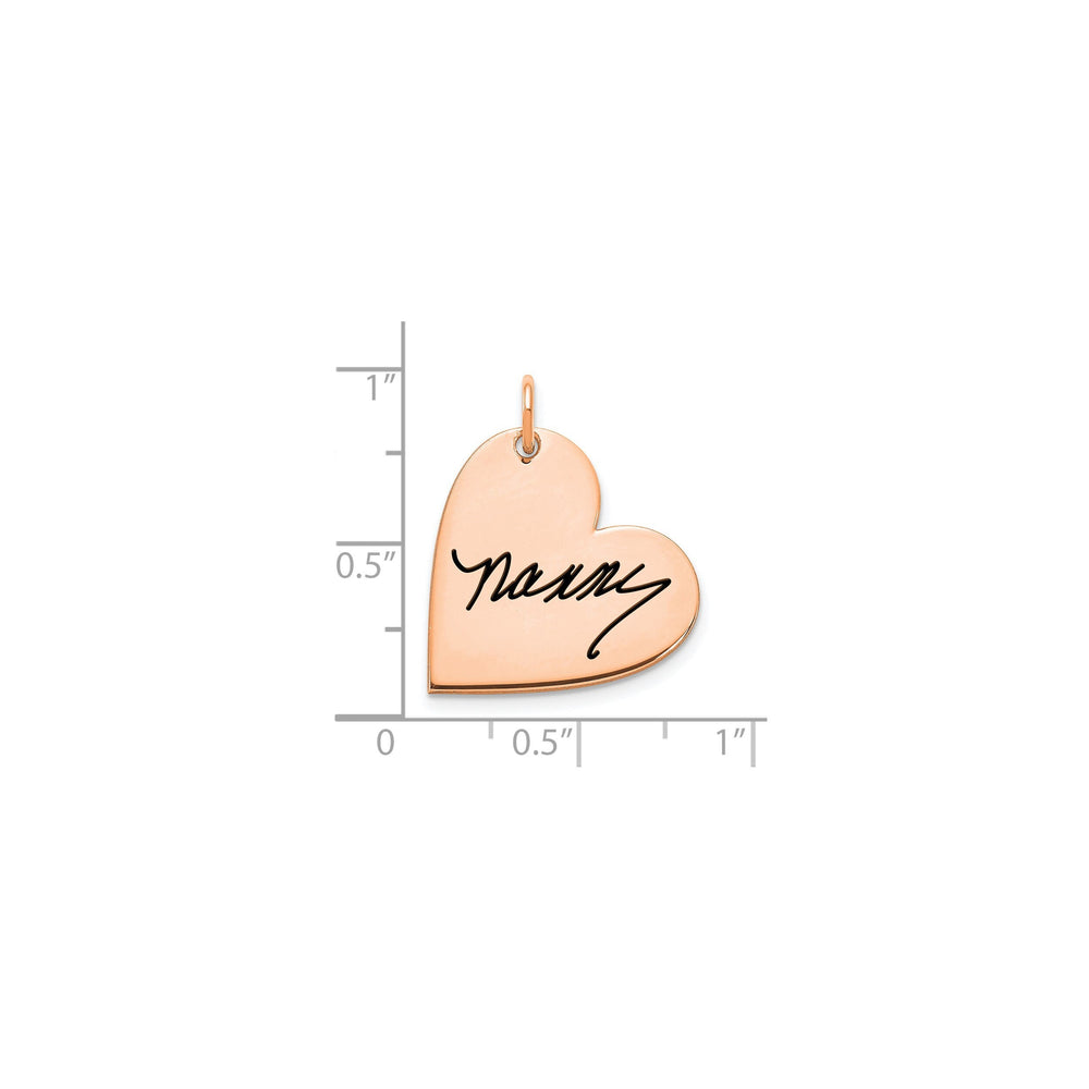 After purchase, please send us a clear image of the handwritten name or signature you’d like engraved. We’ll use laser engraving to replicate it exactly on your heart pendant.