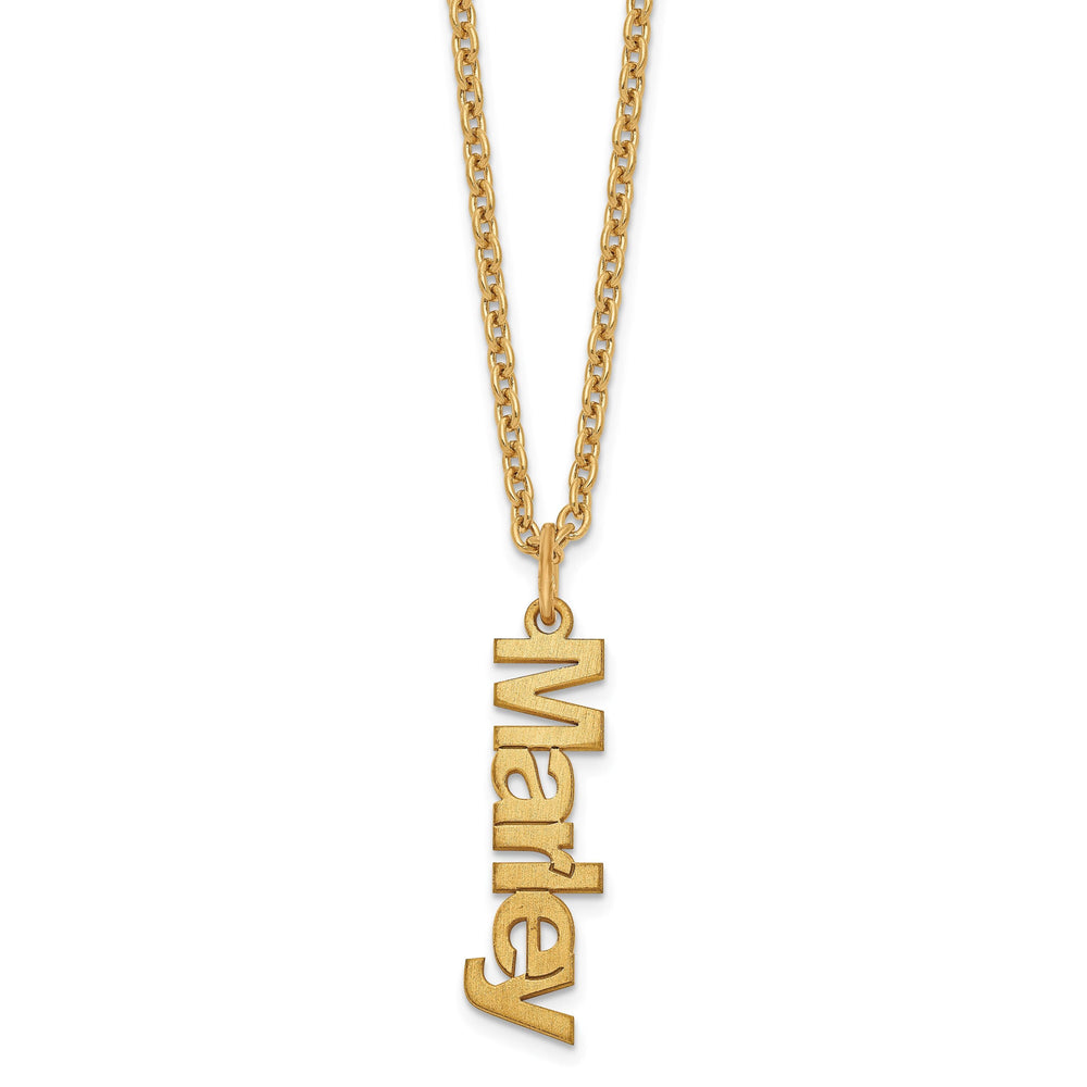 Every charm is custom cut in your chosen metal and attached to a 1 mm polished cable chain with a secure lobster clasp. The vertical orientation and minimalist design make this necklace versatile enough for daily wear while still turning heads with its thoughtful details. Available in sterling silver, gold plated, rose gold plated, or solid 10k or 14k gold in yellow, white, or rose tones.