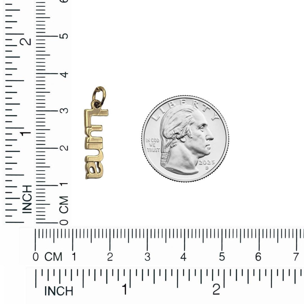 - Charm dimensions: 5 mm width, length varies by name, 27 gauge