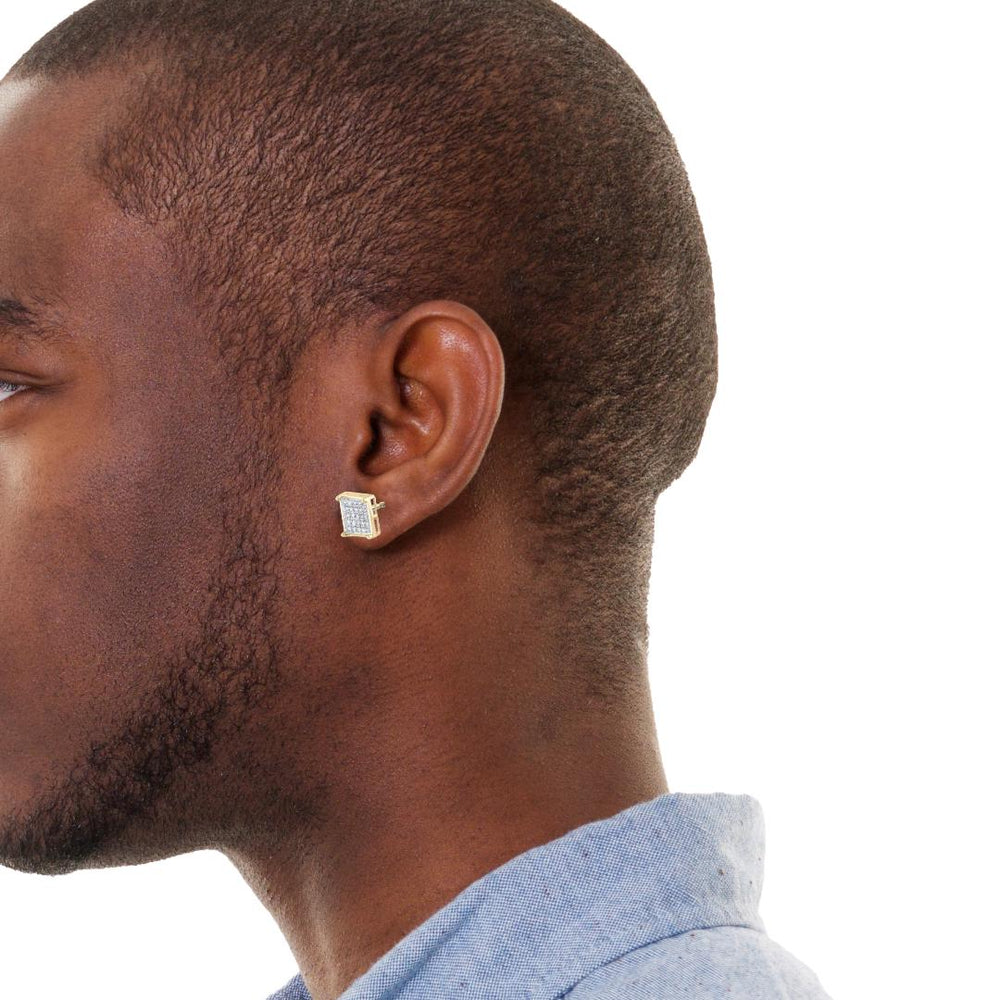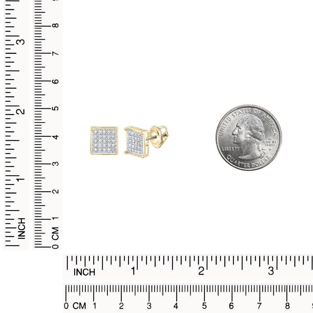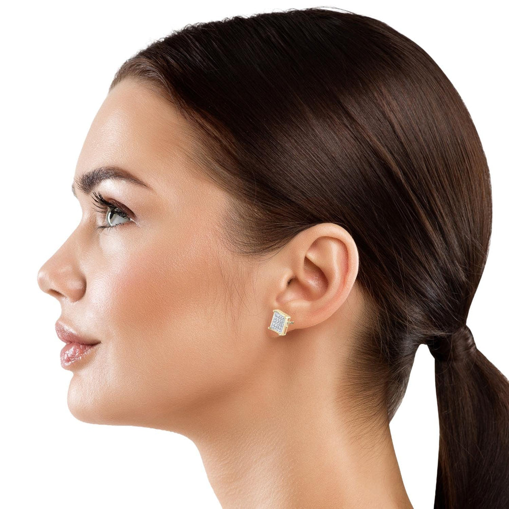 These Gold and Diamond Square Cluster Earrings are a statement of refined style and craftsmanship. Expertly crafted in your choice of 10k or 14k yellow or white gold, each stud features a micropavé square design adorned with natural round white diamonds (1/6 total carat weight) that sparkle from every angle.