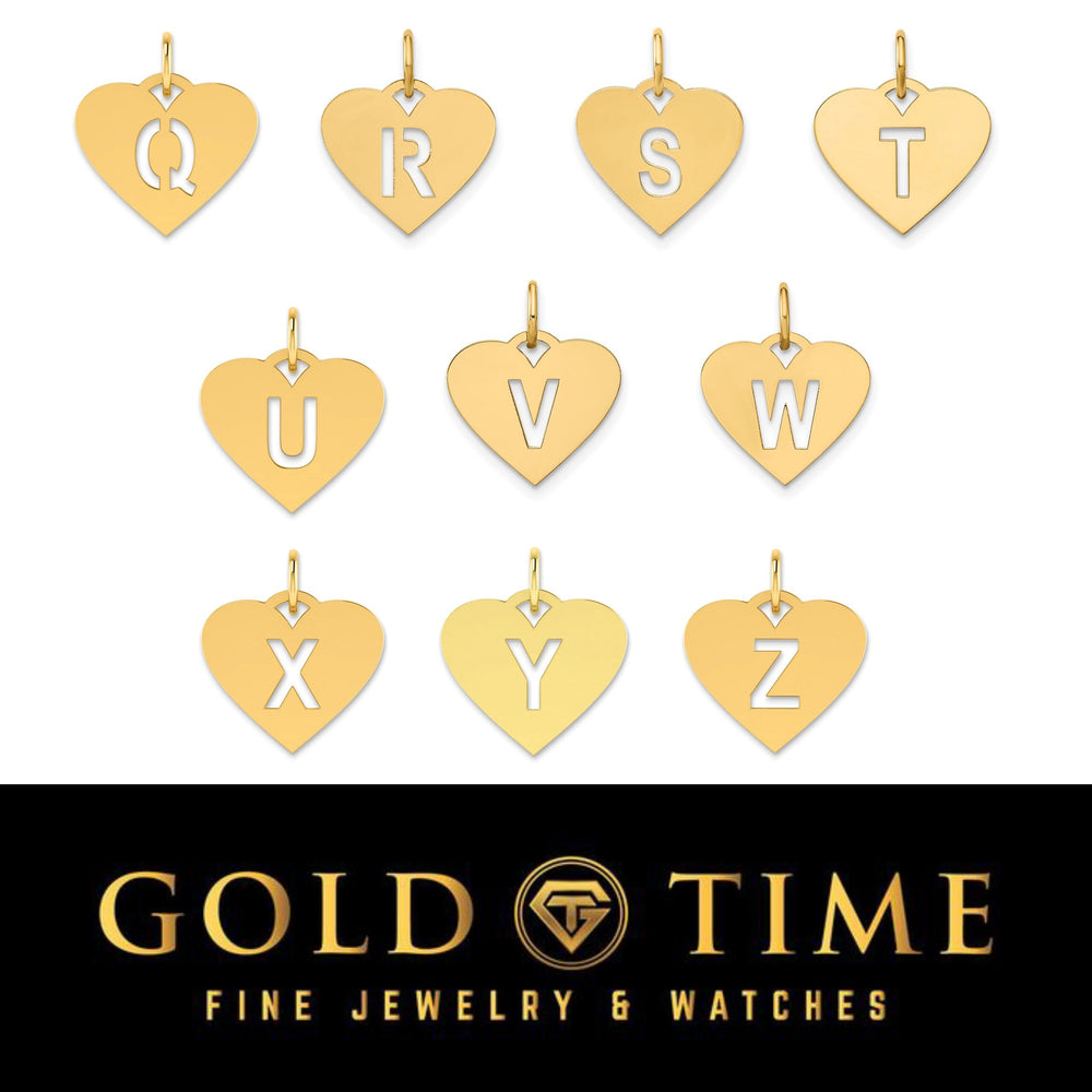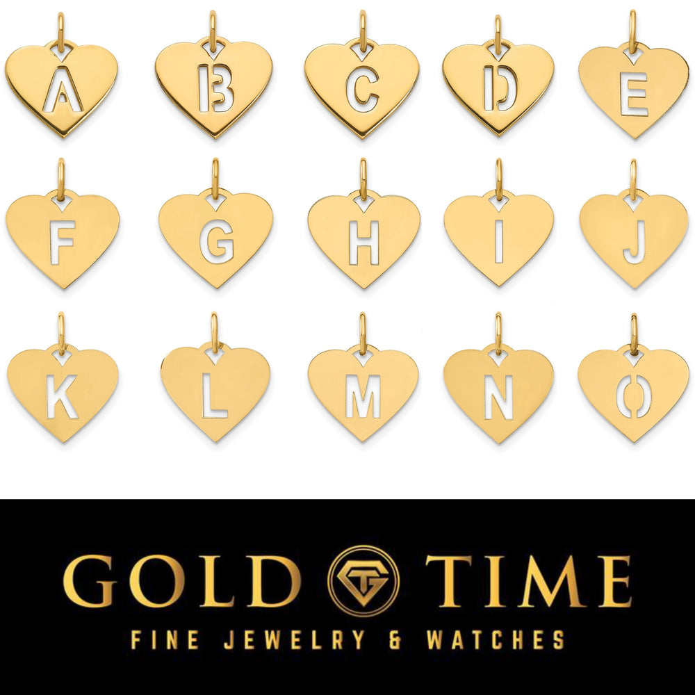 Heart Initial Cut-Out Pendant Charm for Necklace, Bracelet, or Anklet - Available in Sterling Silver, 10k & 14k - Yellow, White, Rose