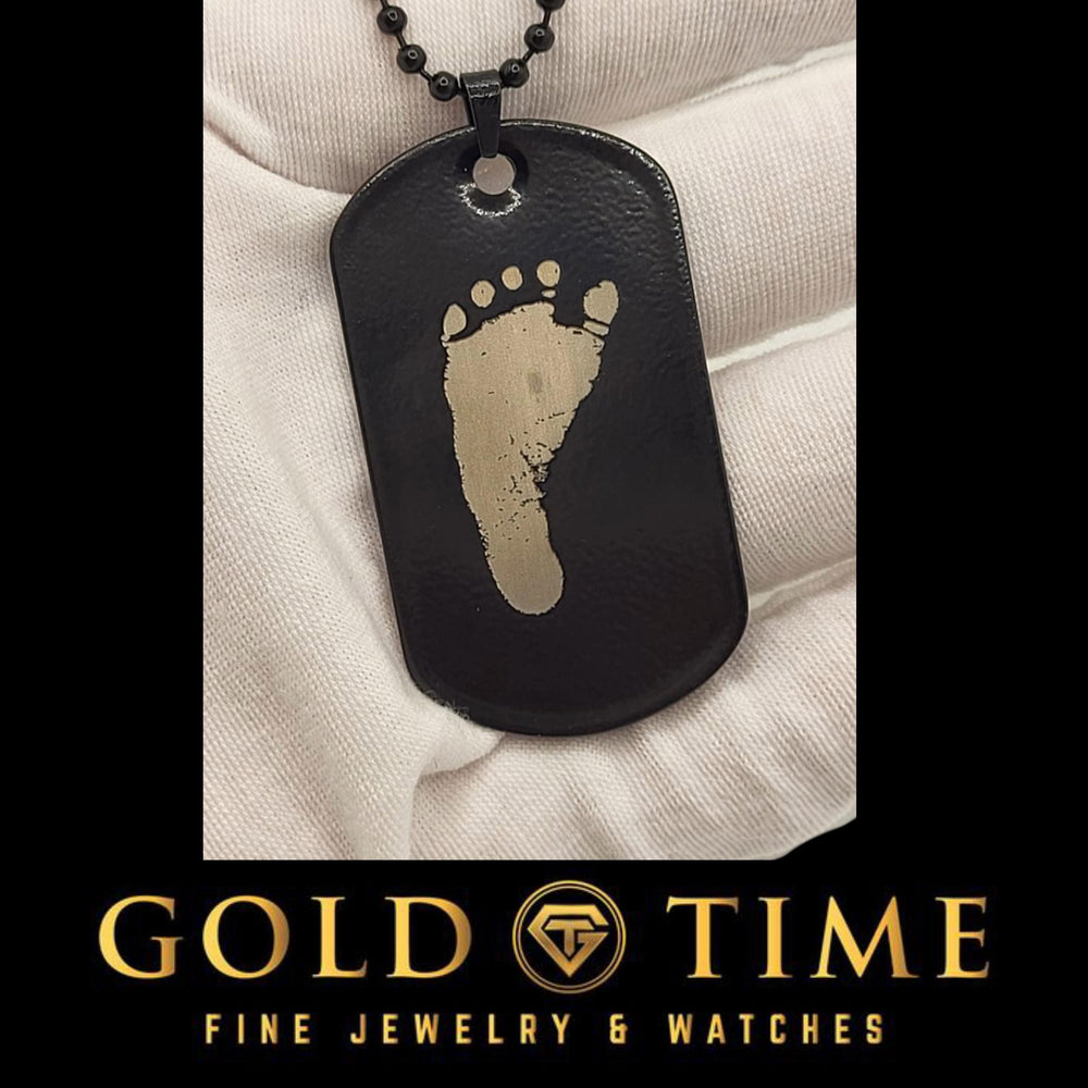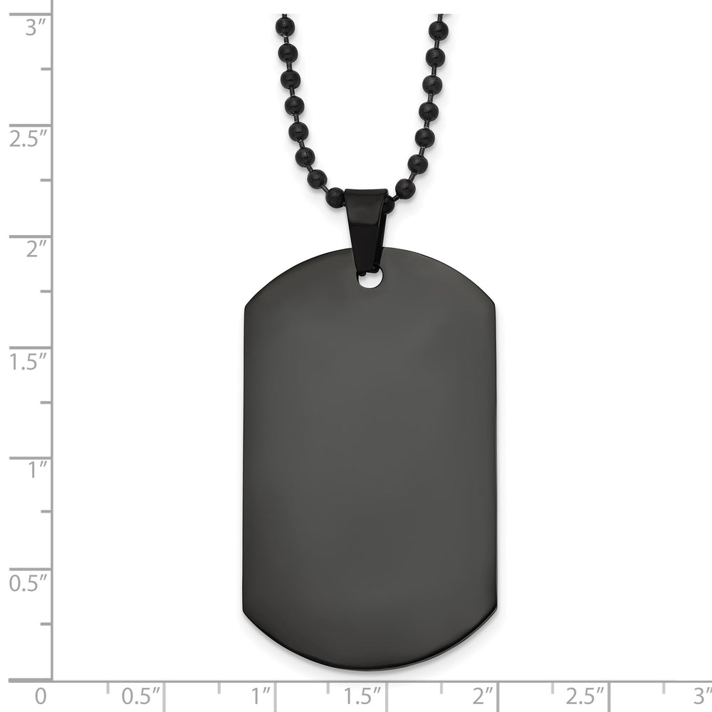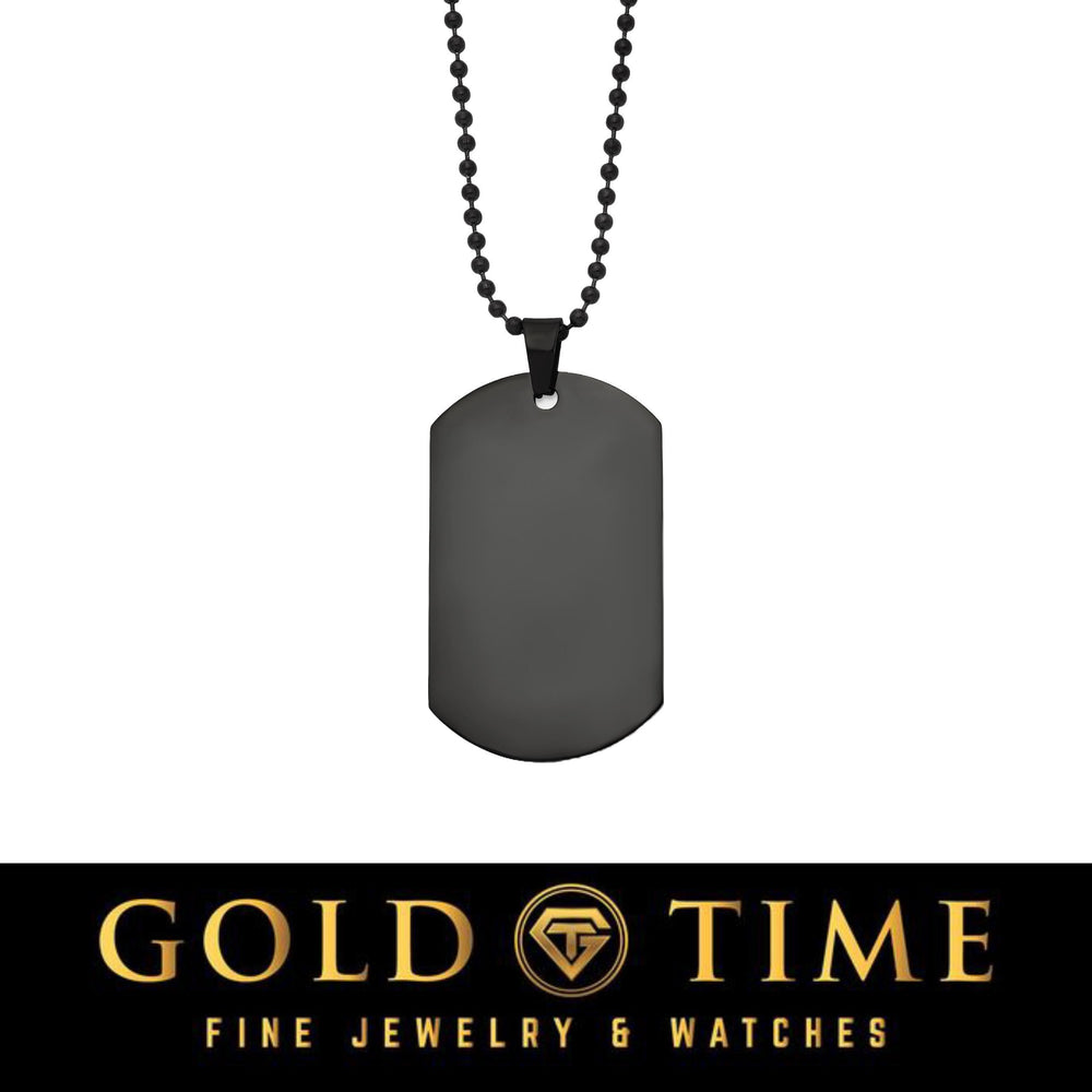 Upgrade your style with this customizable black stainless steel dog tag necklace, featuring a bold and modern IP-plated black finish. This engraved pendant is designed for durability and personalization, allowing you to add up to 6 lines of text (14 characters per line) on both the front and back. Crafted from high-quality stainless steel, the 57.88mm x 29.43mm dog tag hangs from a 20-inch, 2mm beaded chain with a secure lobster clasp, making it a perfect accessory for everyday wear. Whether you‘re personalizing it with initials, dates, military ID, or meaningful messages, this engraved necklace is a stylish keepsake for birthdays, anniversaries, or memorial tributes. Comes beautifully gift-boxed and ready to give.
