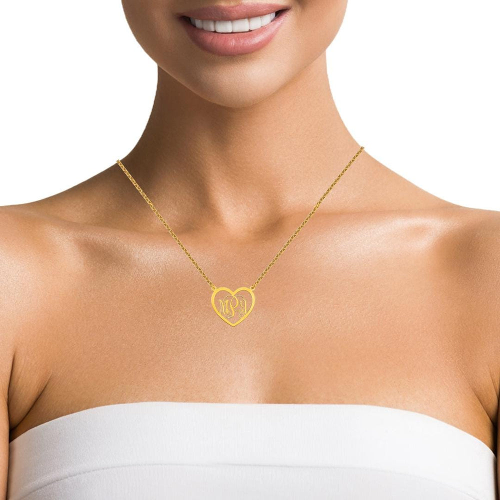 Personalized Custom Heart Monogram Initial Necklace in Gold or Silver