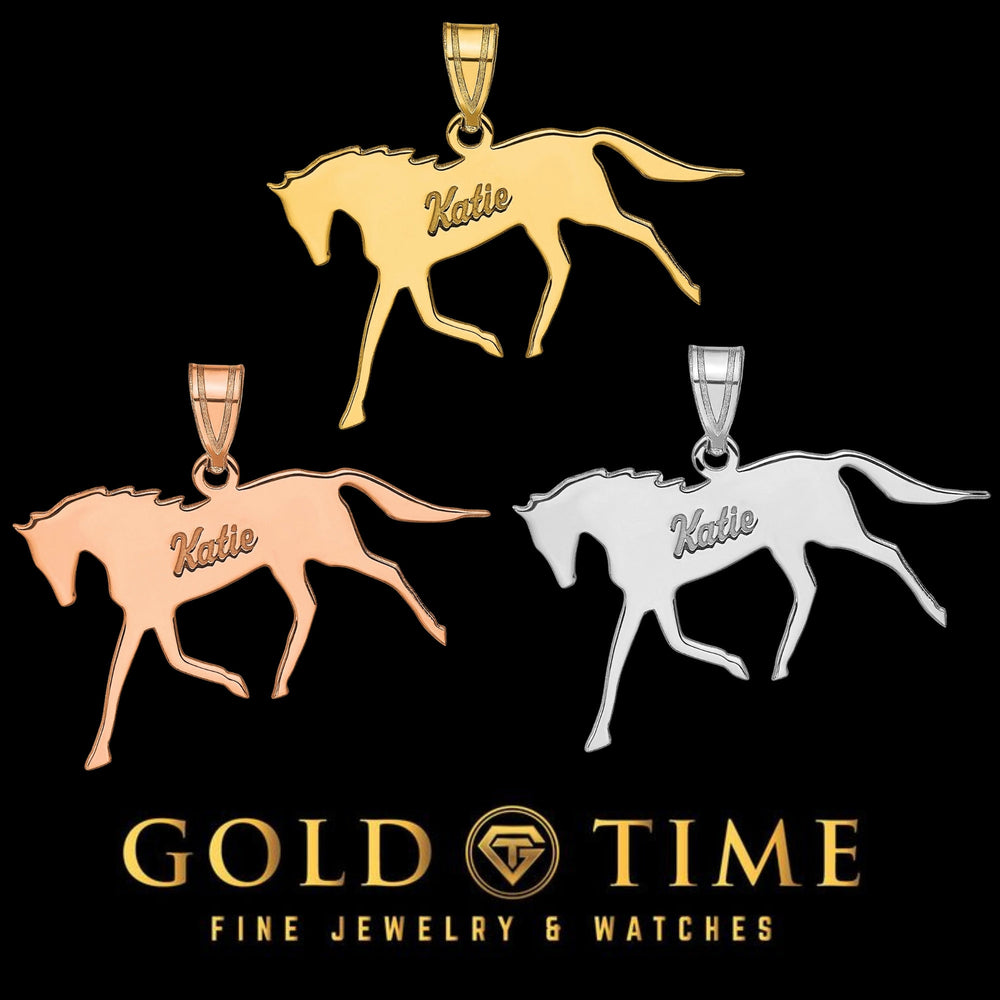 Personalized Horse Cursive Name Pendant -925 Sterling Silver, 10k Gold, 14k Gold -Yellow, White, Rose - foal filly pony stallion gallop