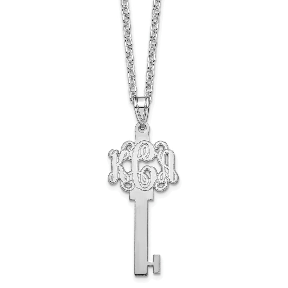 Personalized Script Monogram Key Necklace in Sterling Silver or Gold, Custom Initial Pendant, Gift for Her, Polished Finish, 1620" Chain