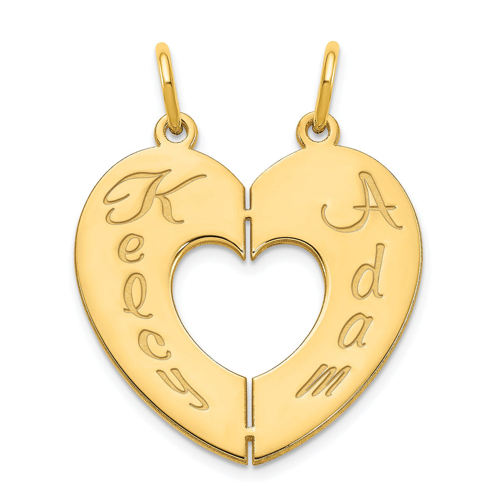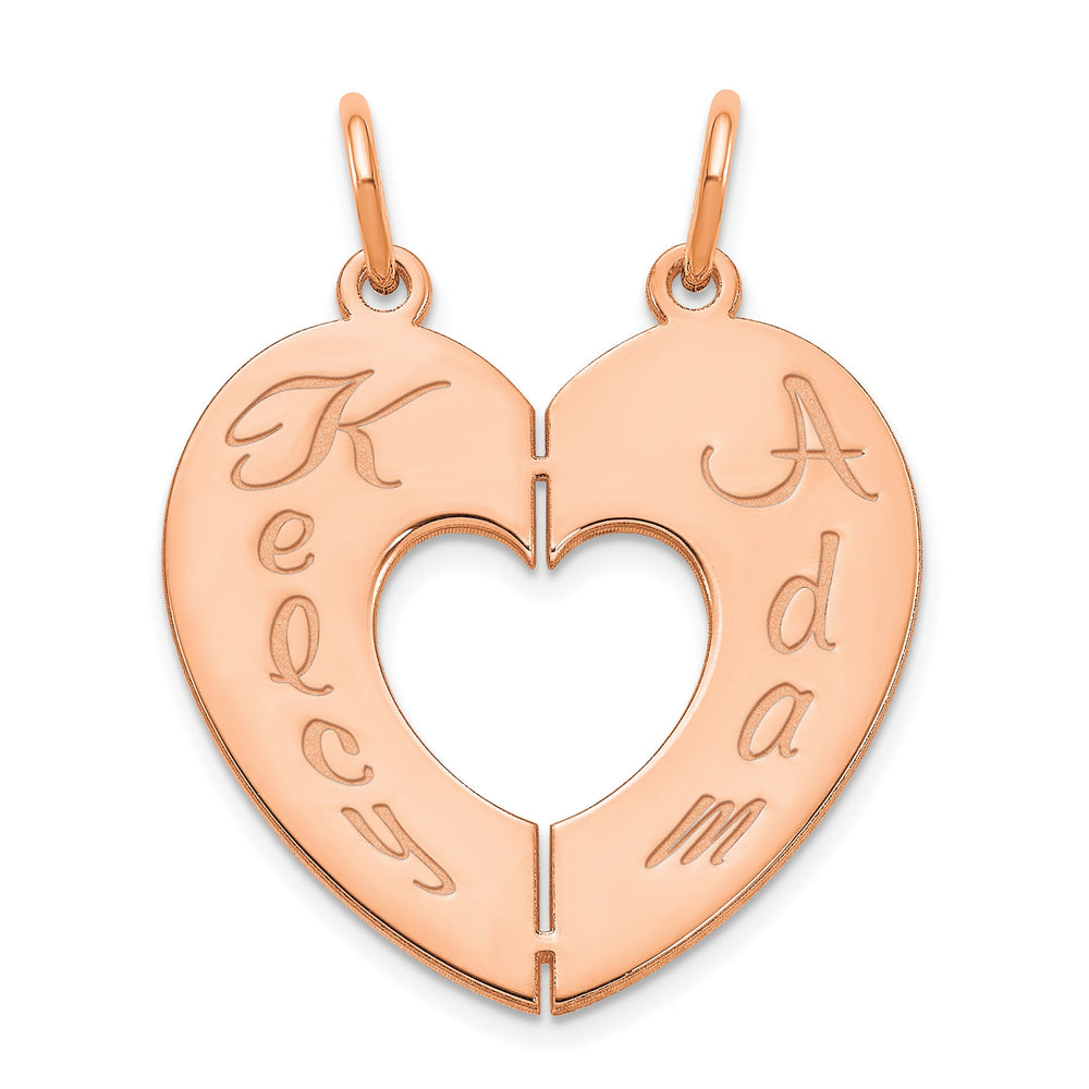 Personalized Solid 10k Gold, 14k Gold, or .925 Sterling Silver 2 (two) Name Breakable Heart Charm Pendant - Yellow, White, Rose (Pink)