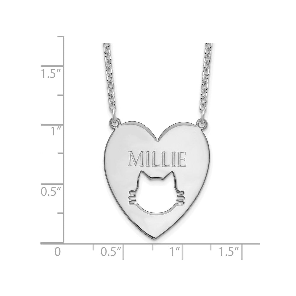 Celebrate your love for your feline friend with this Personalized Sterling Silver Heart Necklace featuring an adorable cat cutout design and custom name engraving. This elegant piece is crafted from 925 sterling silver and is available in a gold-plated finish for an added touch of luxury. The 26mm heart-shaped pendant hangs gracefully from an 18-inch polished cable chain, secured with a lobster clasp for reliability and ease of wear. Whether it‘s a thoughtful gift for a cat lover, a meaningful memorial necklace, or a daily reminder of your beloved pet, this necklace is designed to be both stylish and sentimental. Packaged in an elegant gift box, it‘s ready to make any special occasion unforgettable.