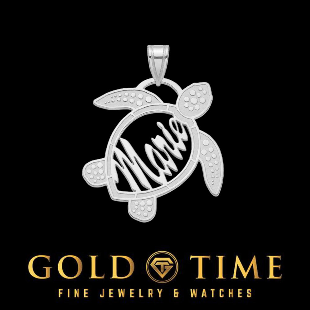 - Made to order personalized name pendant with sea turtle design